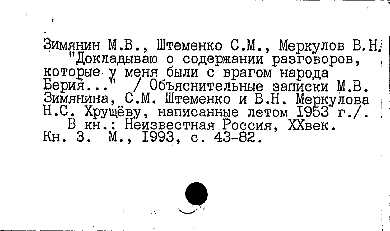 "Докладываю о содержании разговоров, которые у меня были с врагом народа Берия..."