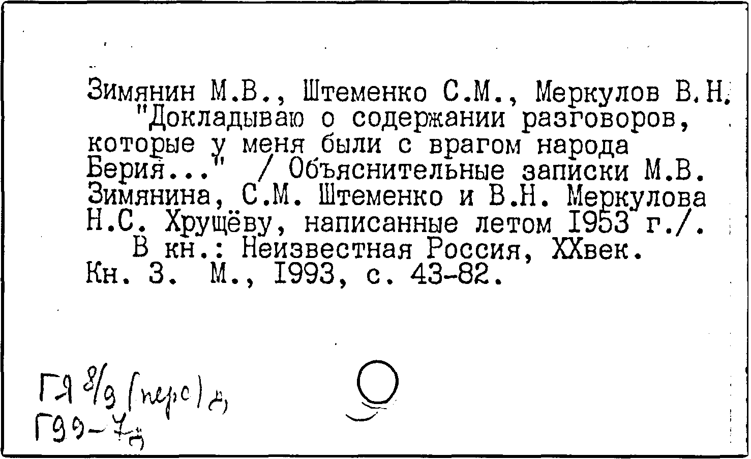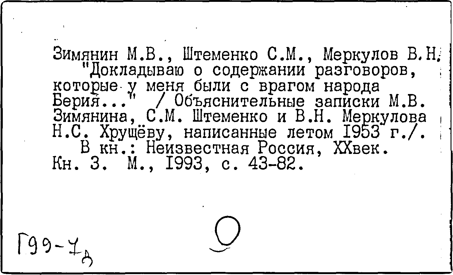 Книга (аналит. описание): "Докладываю о содержании разговоров, которые у меня были с врагом народа Берия..."