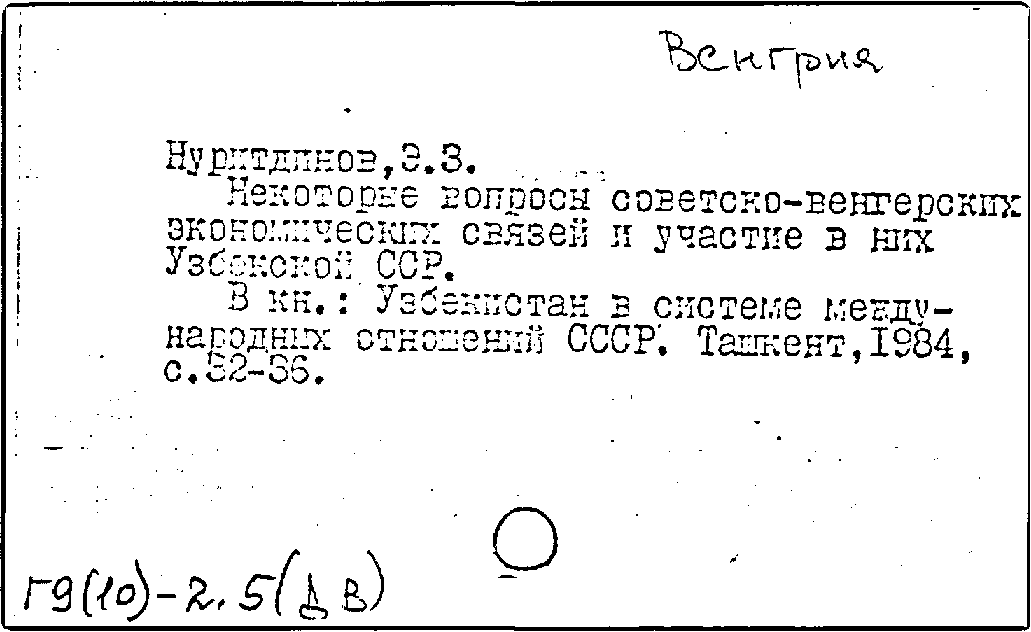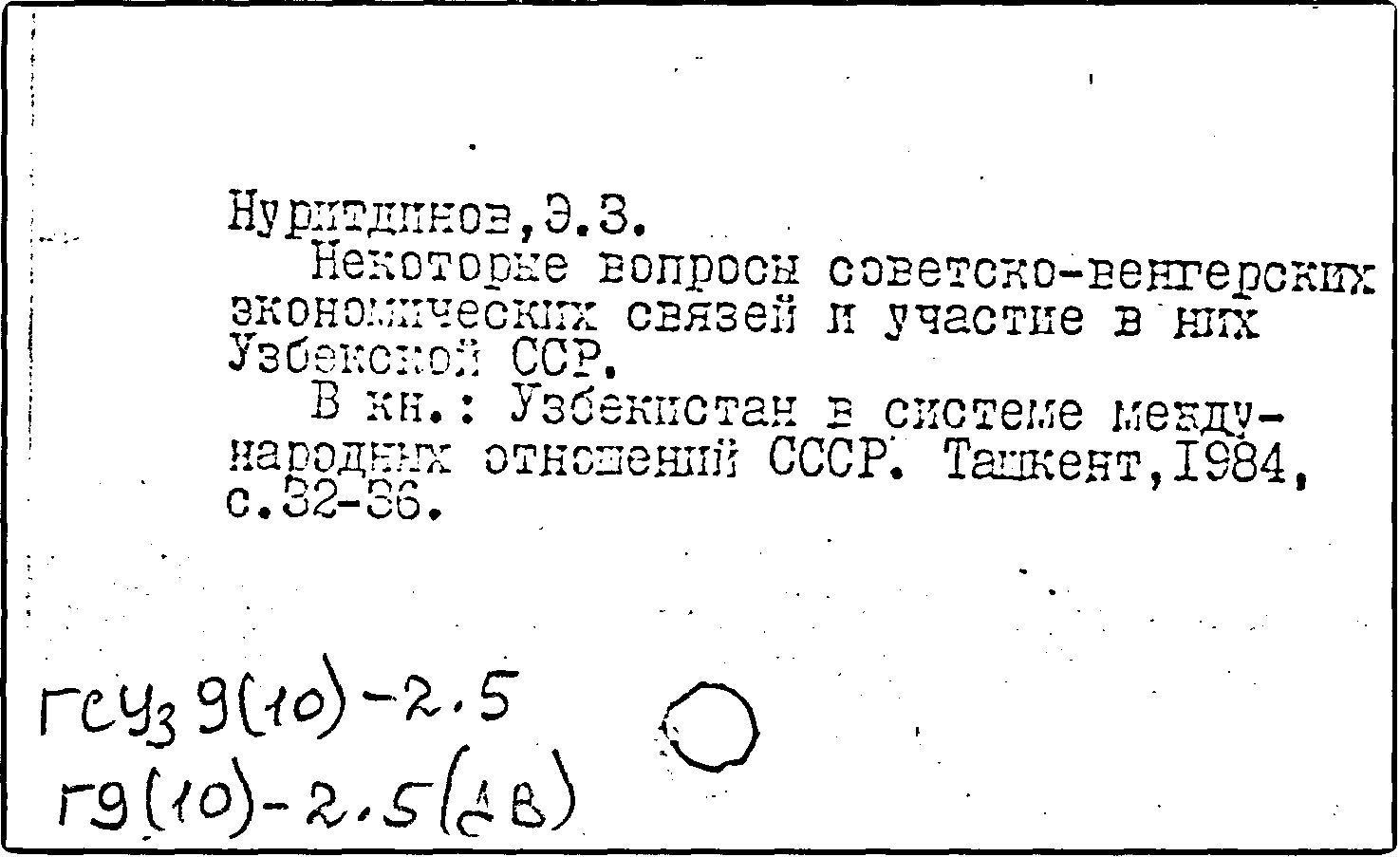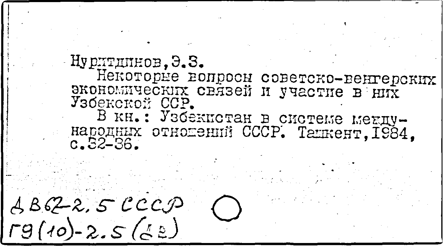 Некоторые вопросы советско-венгерских экономических связей и участие в них Узбекской ССР