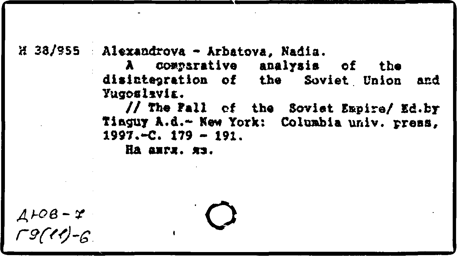 Книга (аналит. описание): A comparative annalysis of the disintegration of the Soviet Union and Yugoslavia