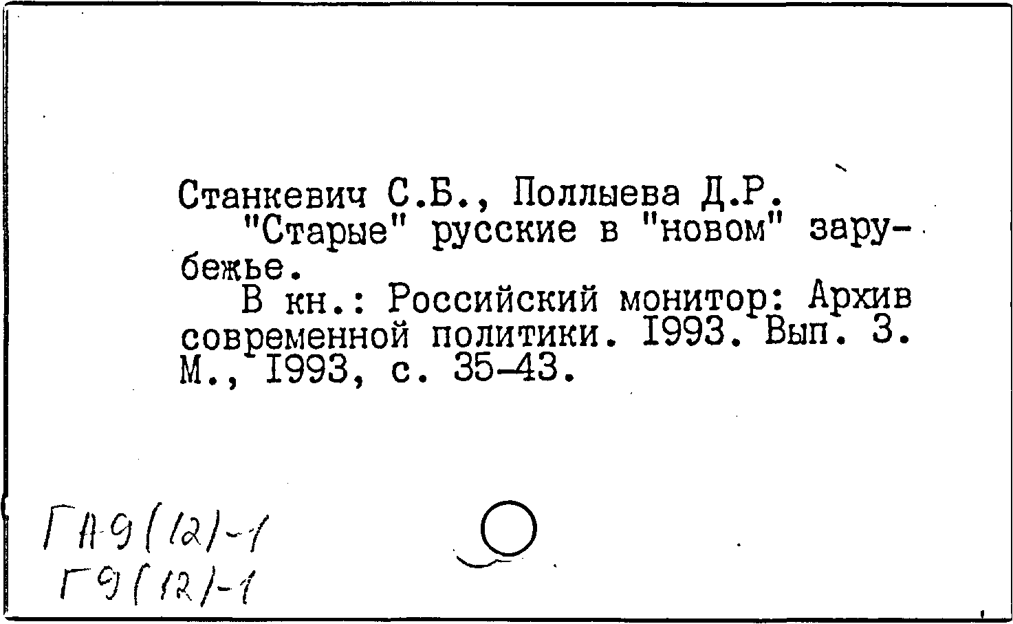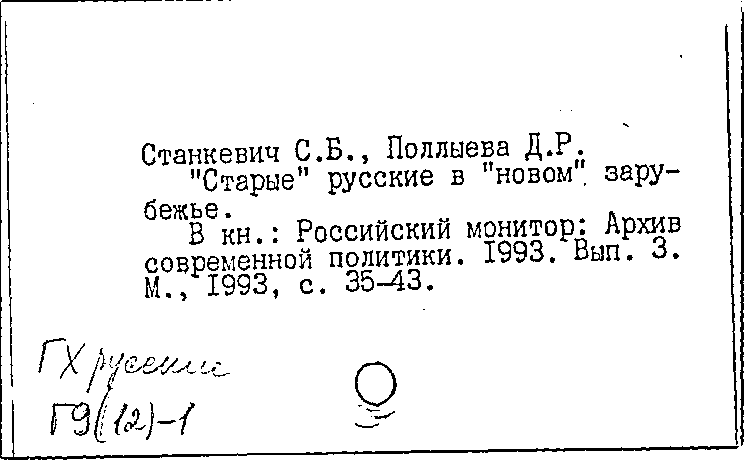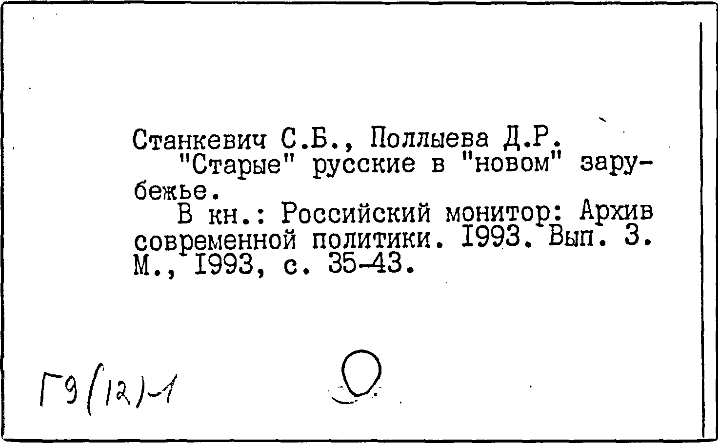 Книга (аналит. описание): "Старые" русские в "новом" зарубежье