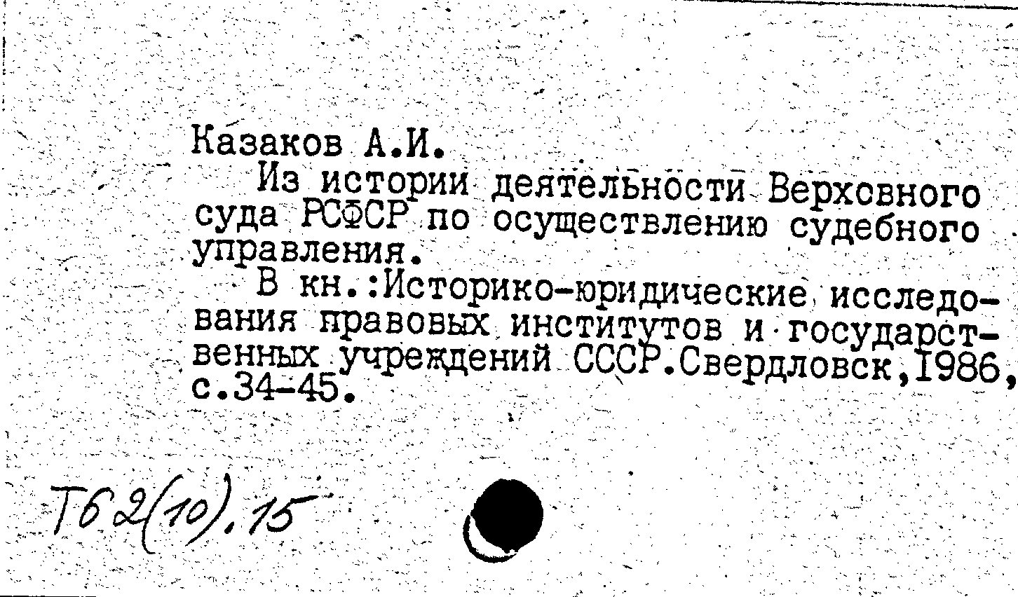 Книга (аналит. описание): Из истории деятельности Верховного суда РСФСР по осуществлению судебного управления