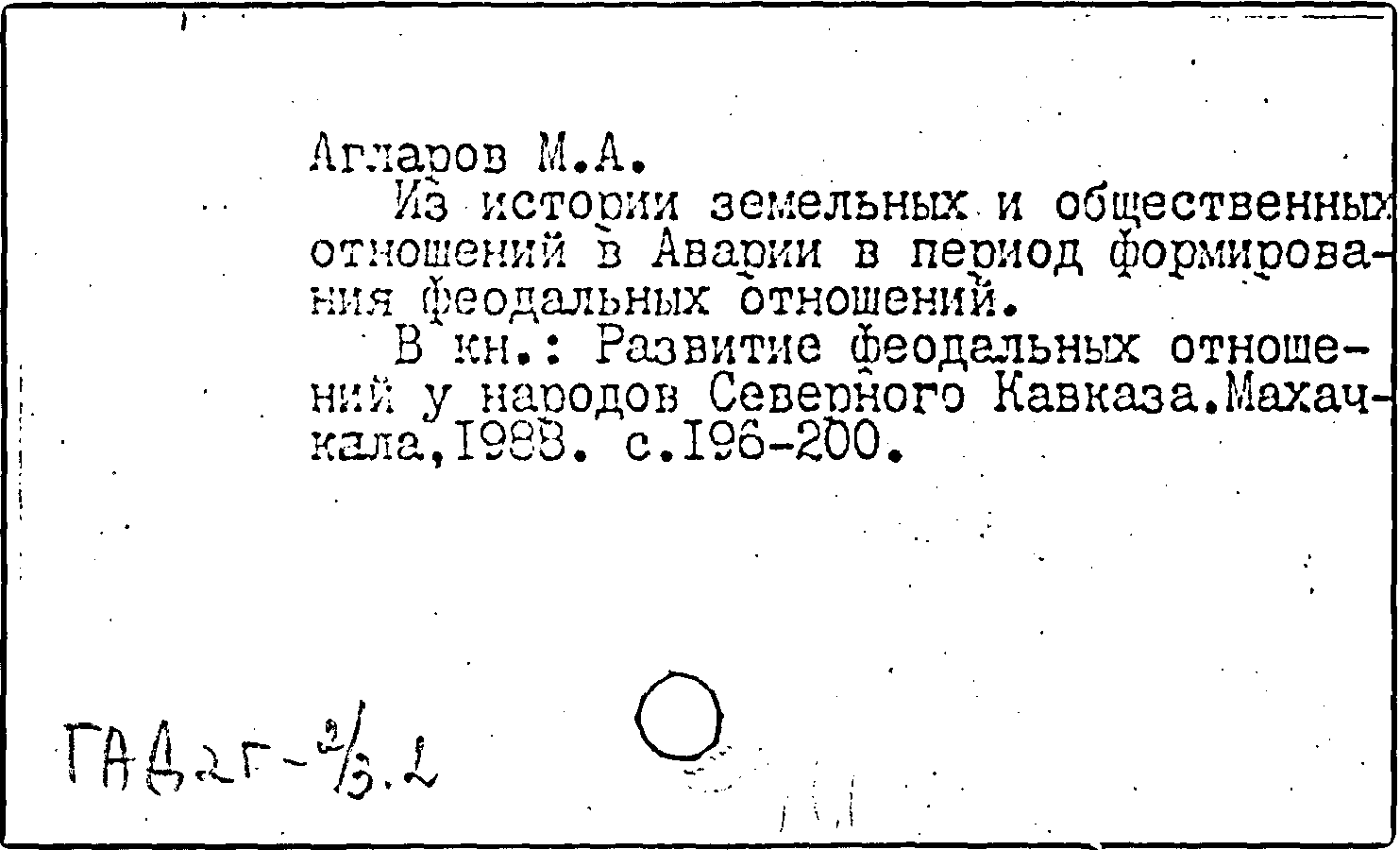 Из истории земельных и общественных отношений в Аварии в период формирования феодальных отношений