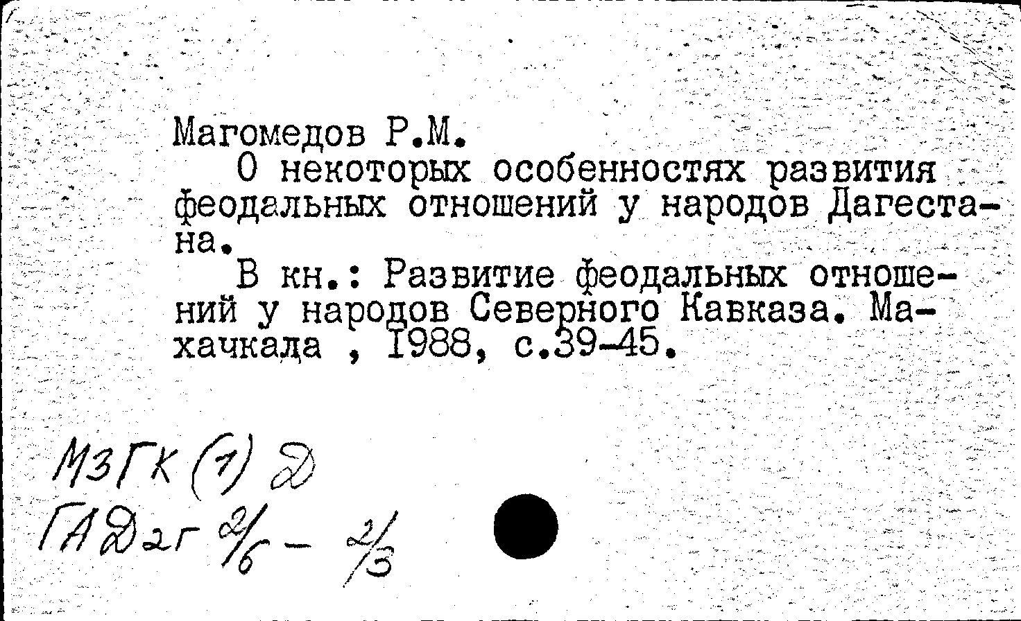 Книга (аналит. описание): О некоторых особенностях развития феодальных отношений у народов Дагестана