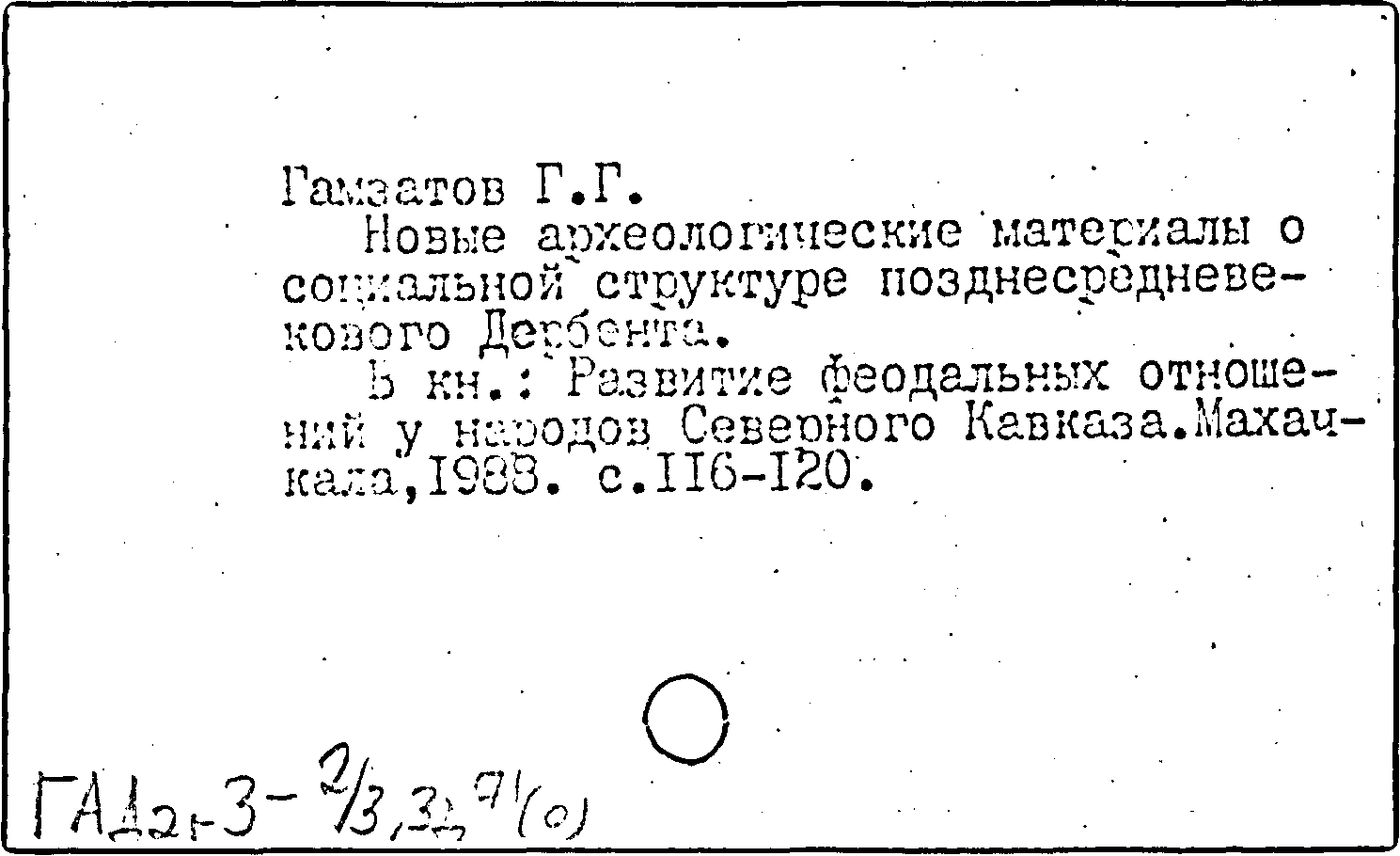 Книга (аналит. описание): Новые археологические материалы о социальной структуре позднесредневекового Дербента