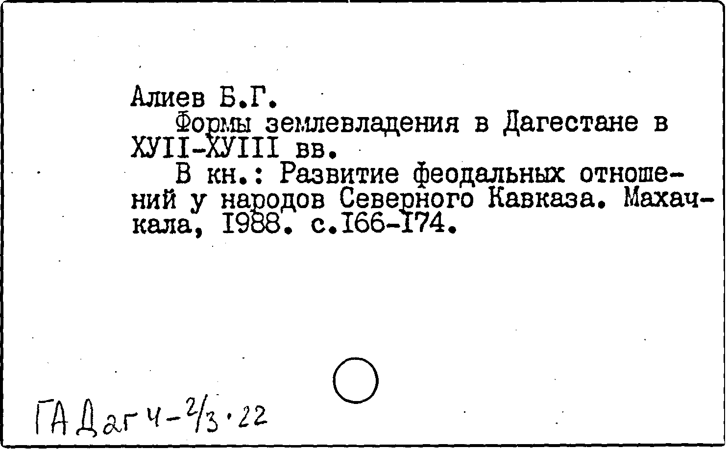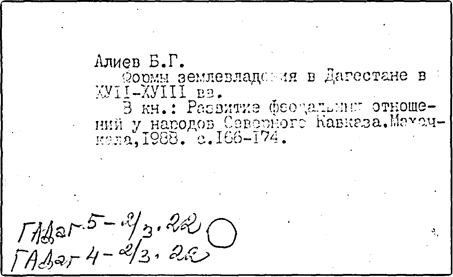 Формы землевладения в Дагестане в XVII-XVIII вв.