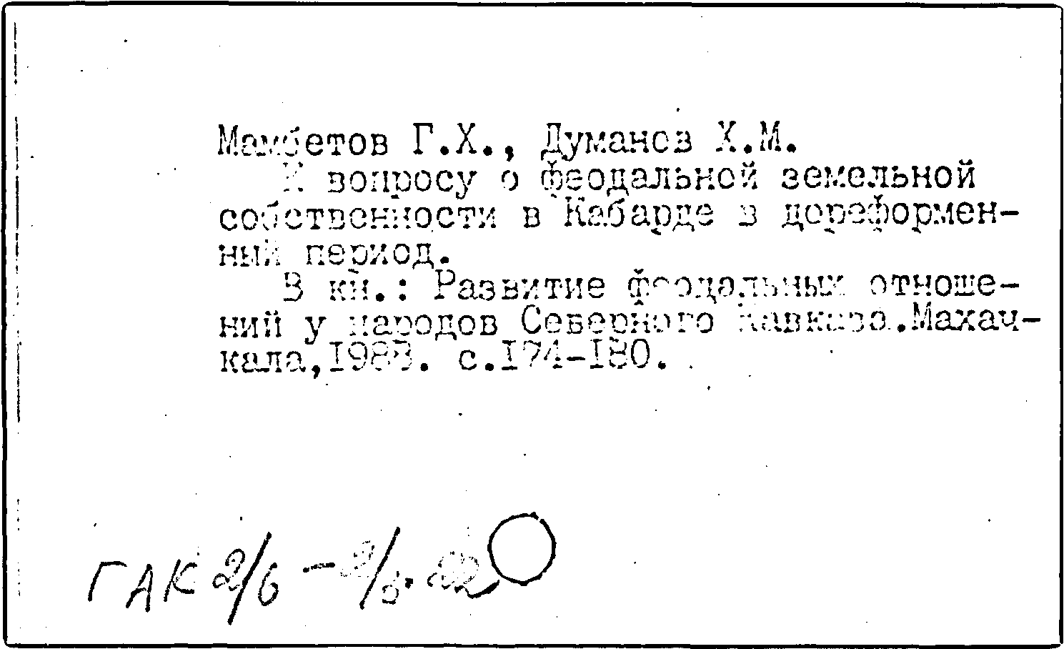 Книга (аналит. описание): К вопросу о феодальной земельной собственности в Кабарде в дореформенный период