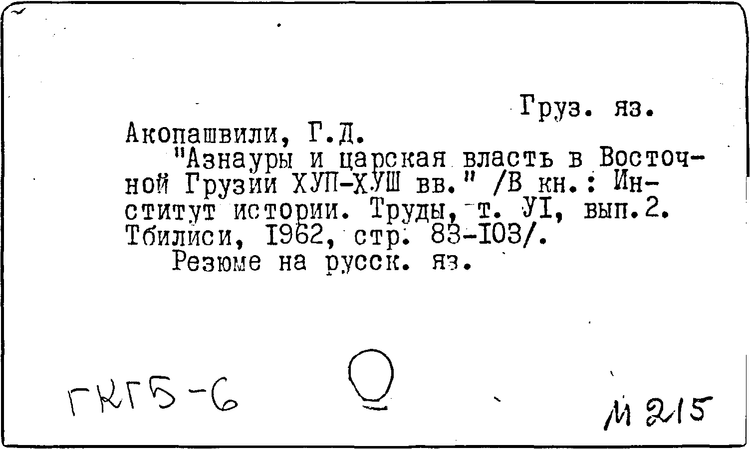 Азнауры и царская власть в Восточной Грузии XVII-XVIII вв.