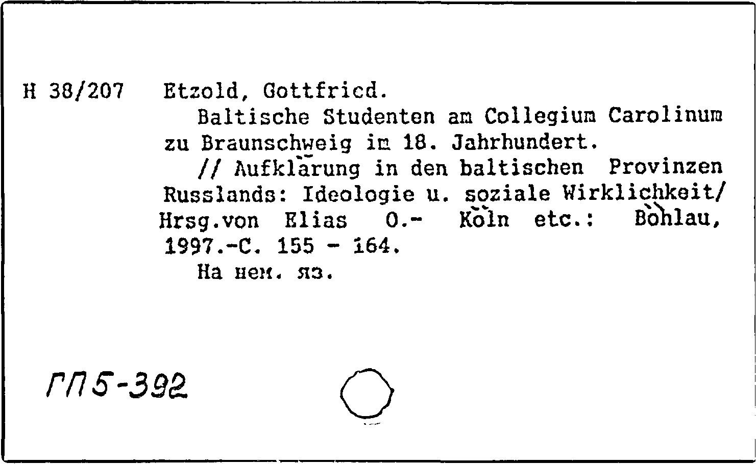 Книга (аналит. описание): Baltische Studenten am Collegium Carolinum zu Braunschweig im 18. Jahrhundert