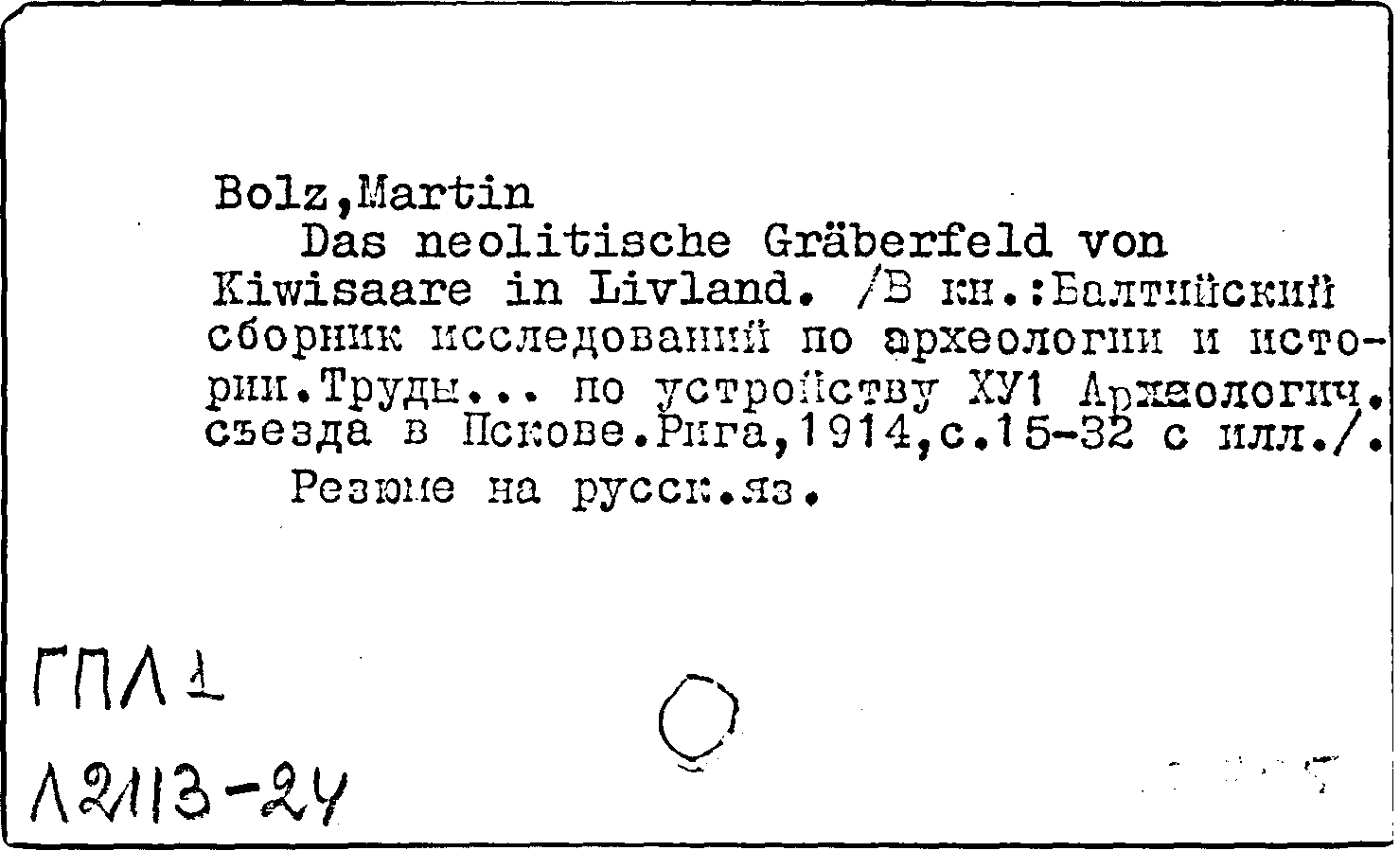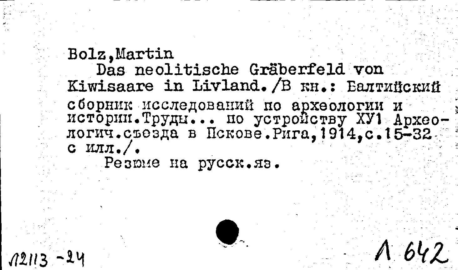 Книга (аналит. описание): Das neolitische Graberfeld von Kiwisaare in Litvland