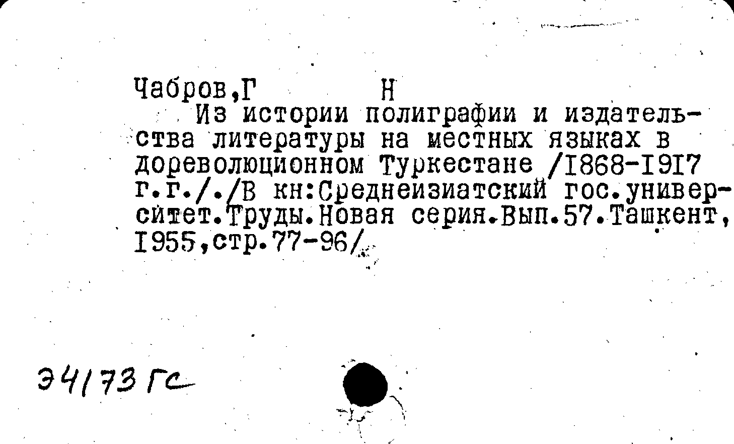 Из истории полиграфии и издательства литературы на местных языках в дореволюционном Туркестане (1868-1917 гг.)