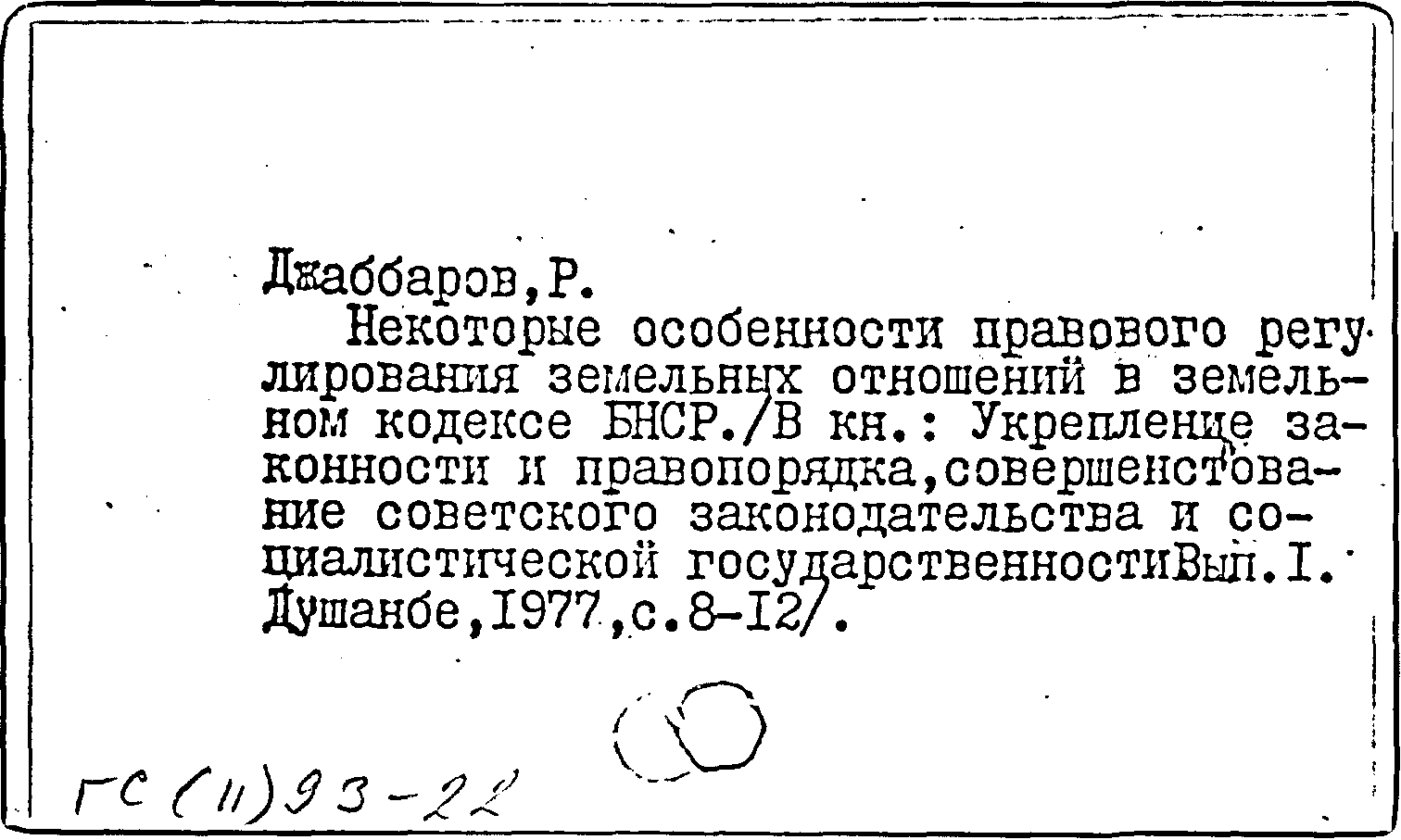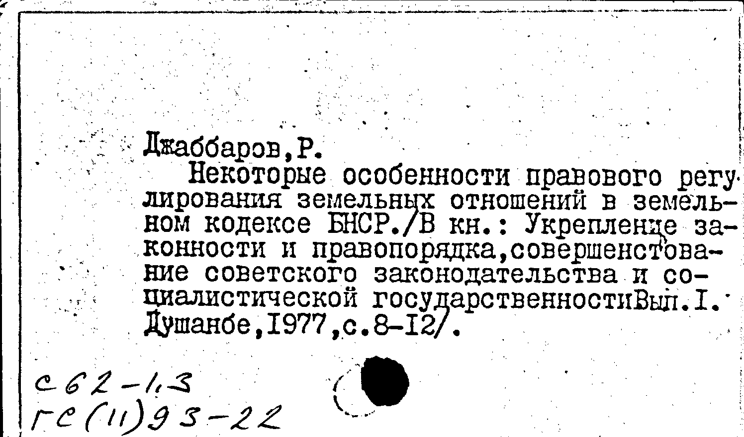 Книга (аналит. описание): Некоторые особенности правового регулирования земельных отношений в земельном кодексе БНСР