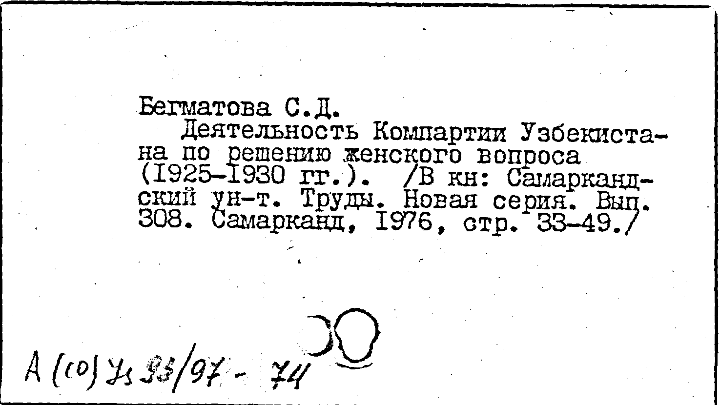 Труды. Новая серия. Вып. 308: К истории борьбы партийной организации Узбекистана по осуществлению ленинской национальной политики. (1917-1971 гг.)