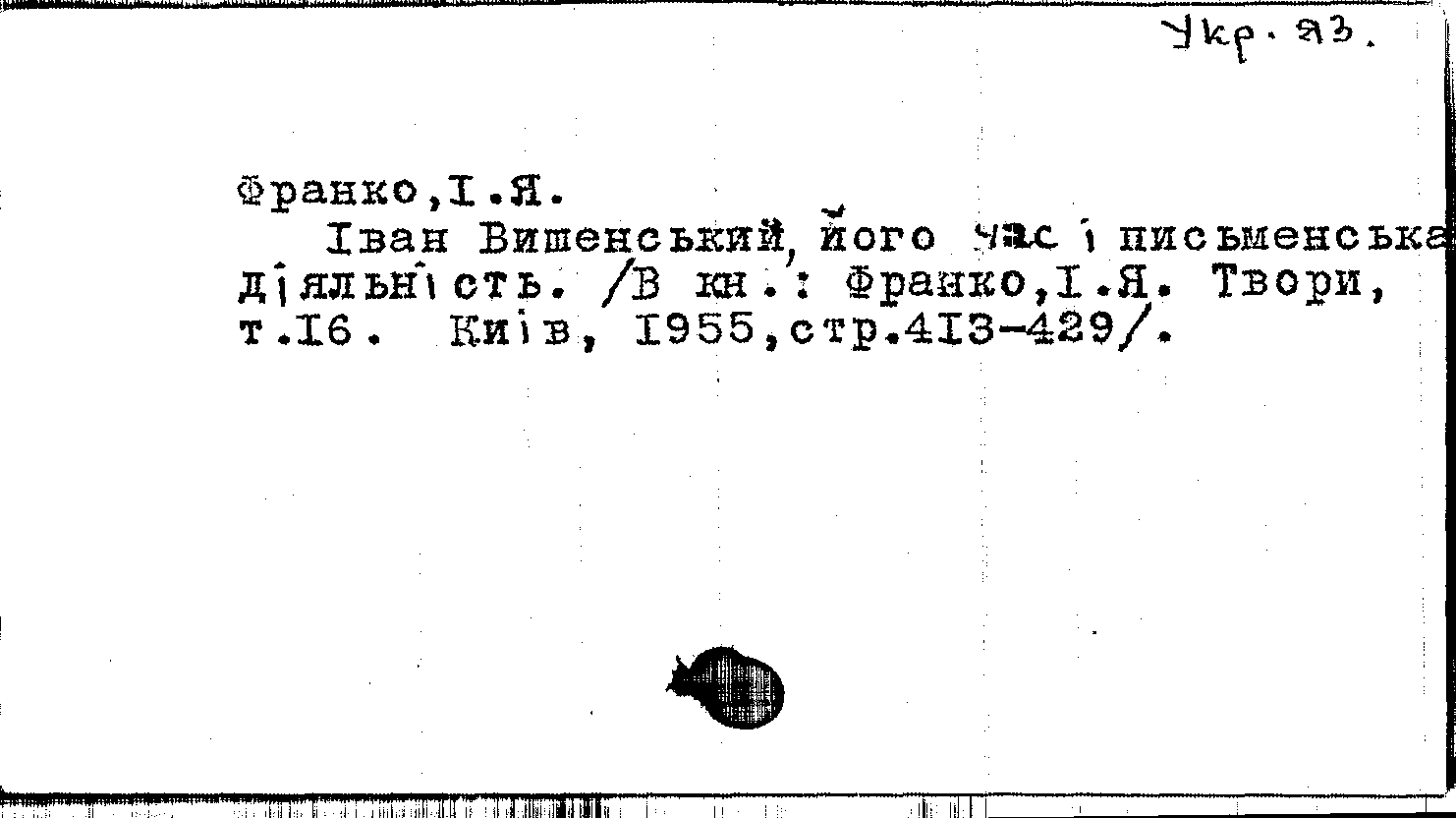 Книга (аналит. описание): Iван Вишенський його час i письменська дiяльнiсть