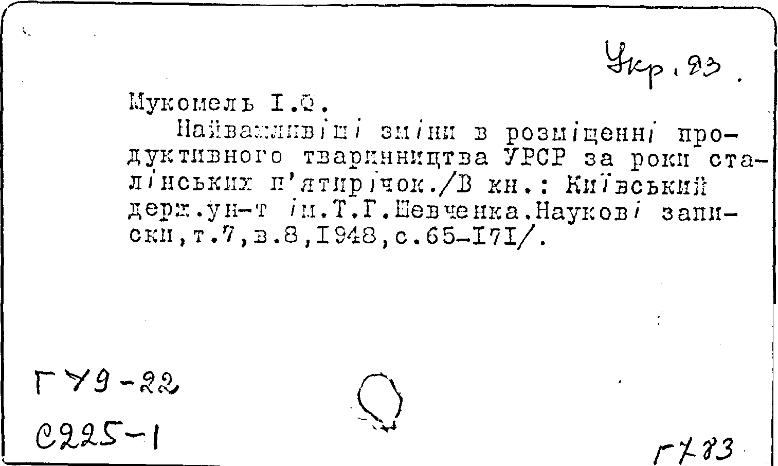 Книга (аналит. описание): Найважливiшi змiни в розмiщеннi продуктивного тваринництва УРСР за роки сталiнських п'ятирiчок