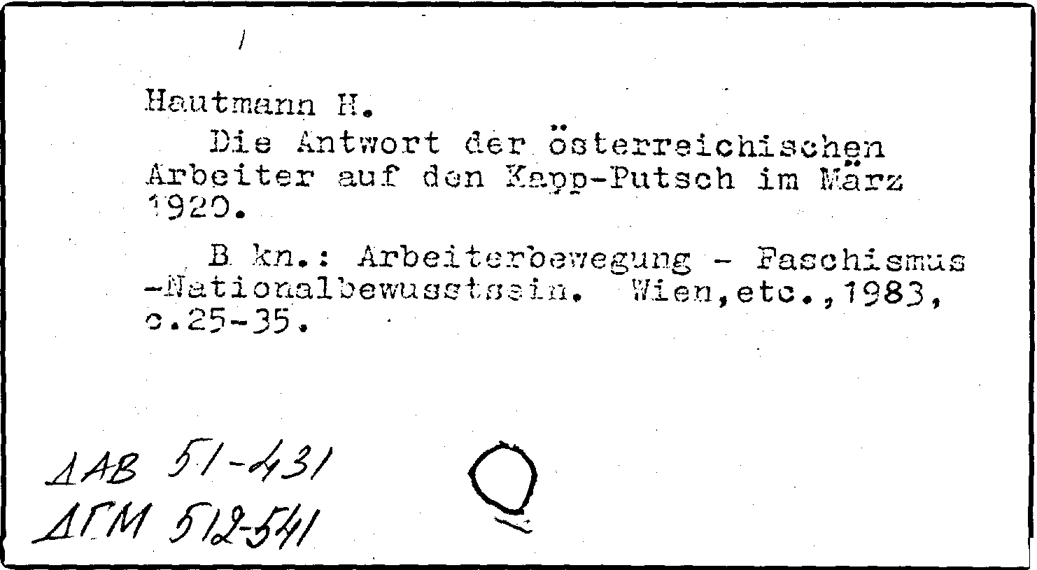 Книга (аналит. описание): Die Antwort der osterreichischen Arbeiter auf den Kapp-Putsch im Marz 1920