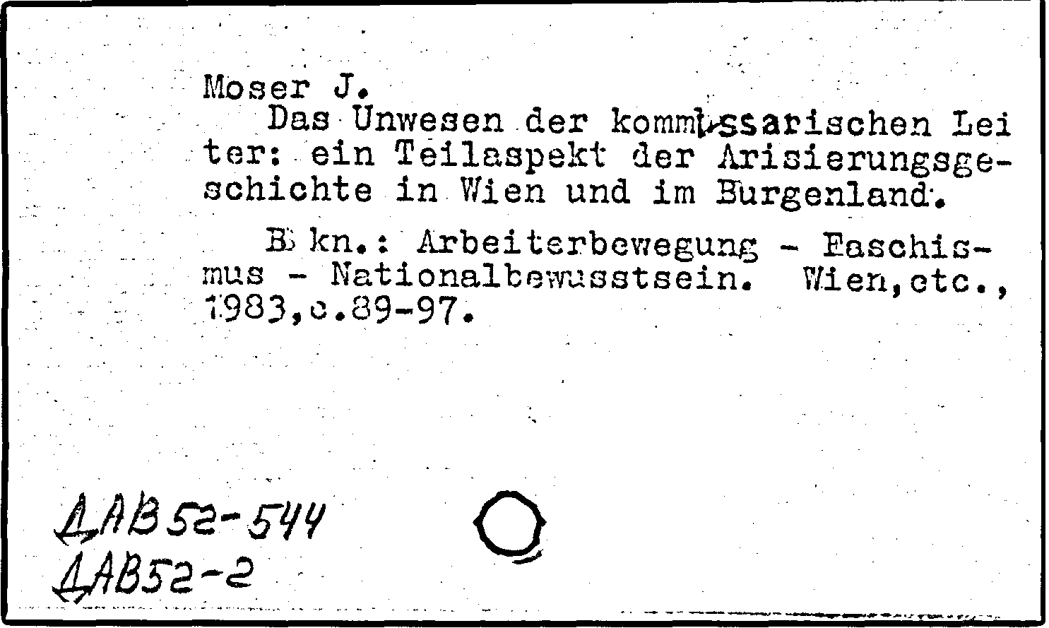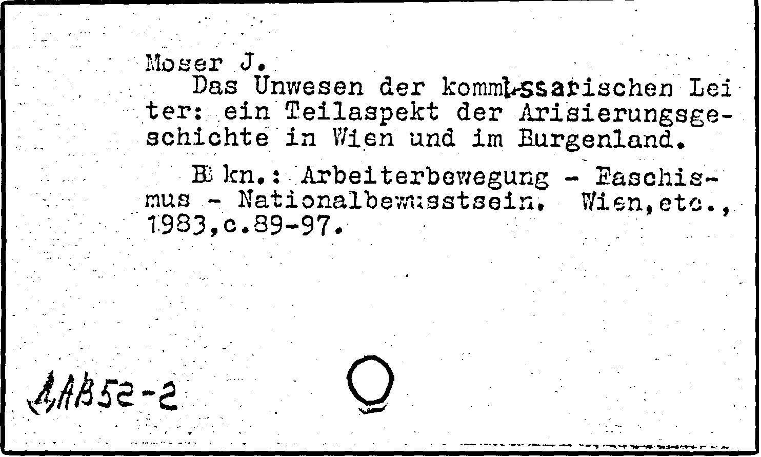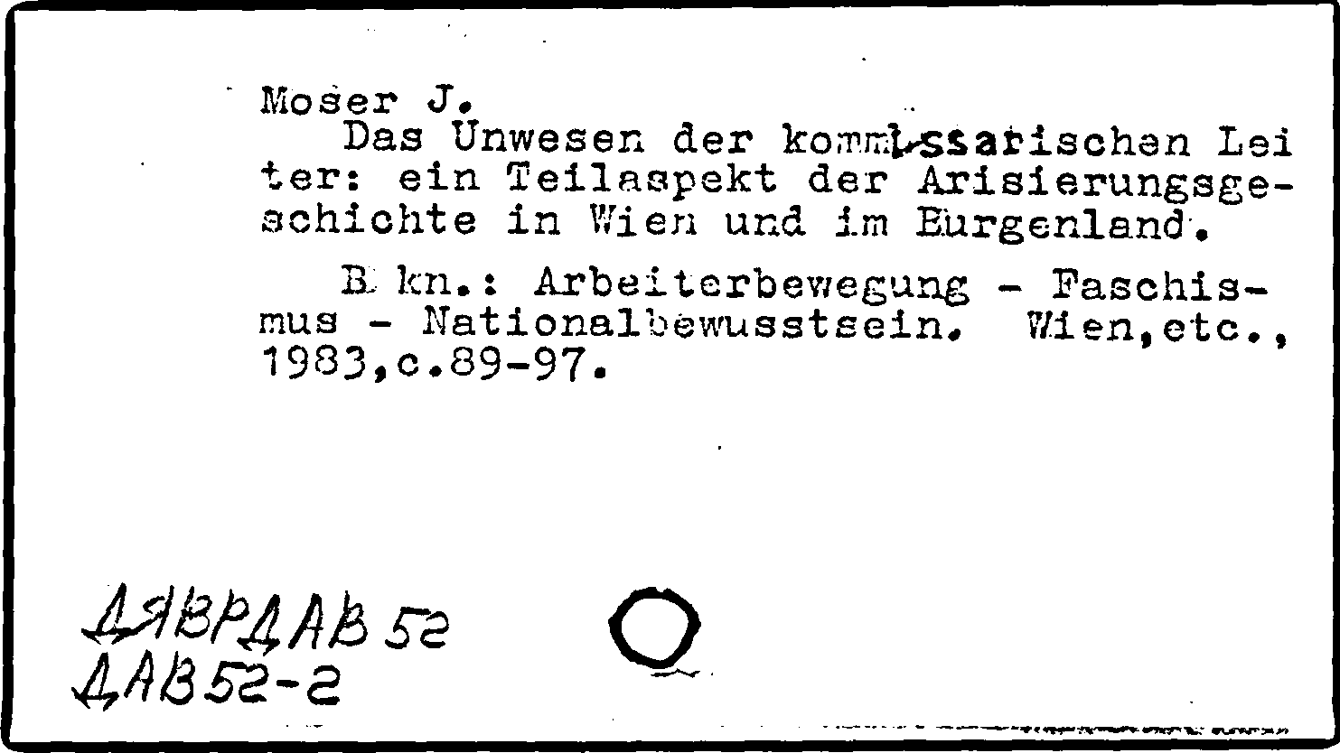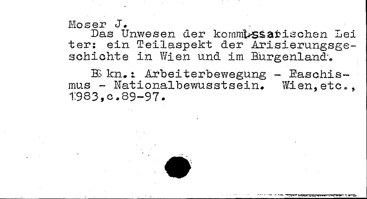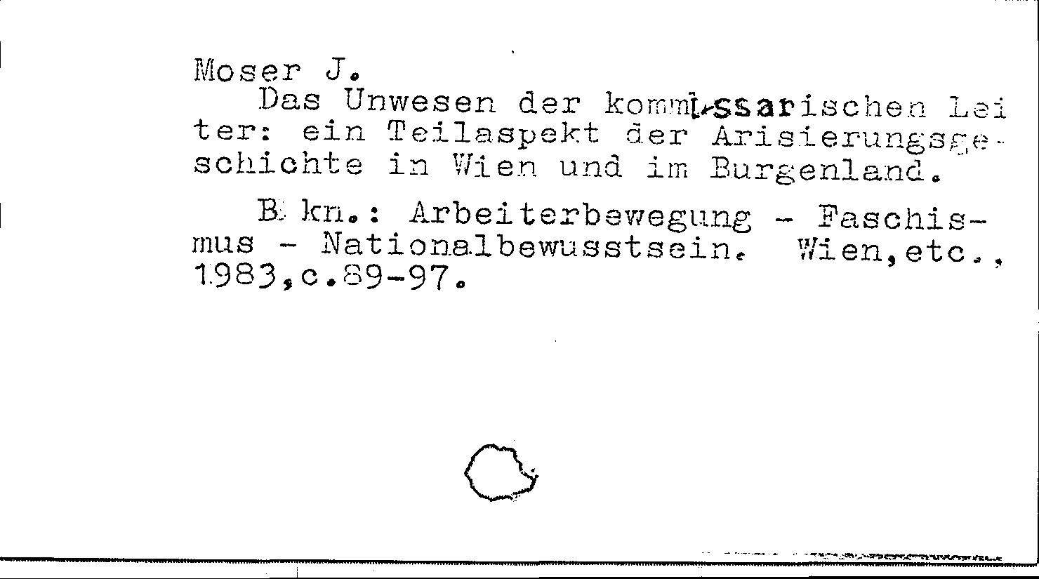 Книга (аналит. описание): Das Unwesen der kommissarischen Leiter: ein Teilaspekt der Arisierungsgeschichte in Wien und im Burgenland