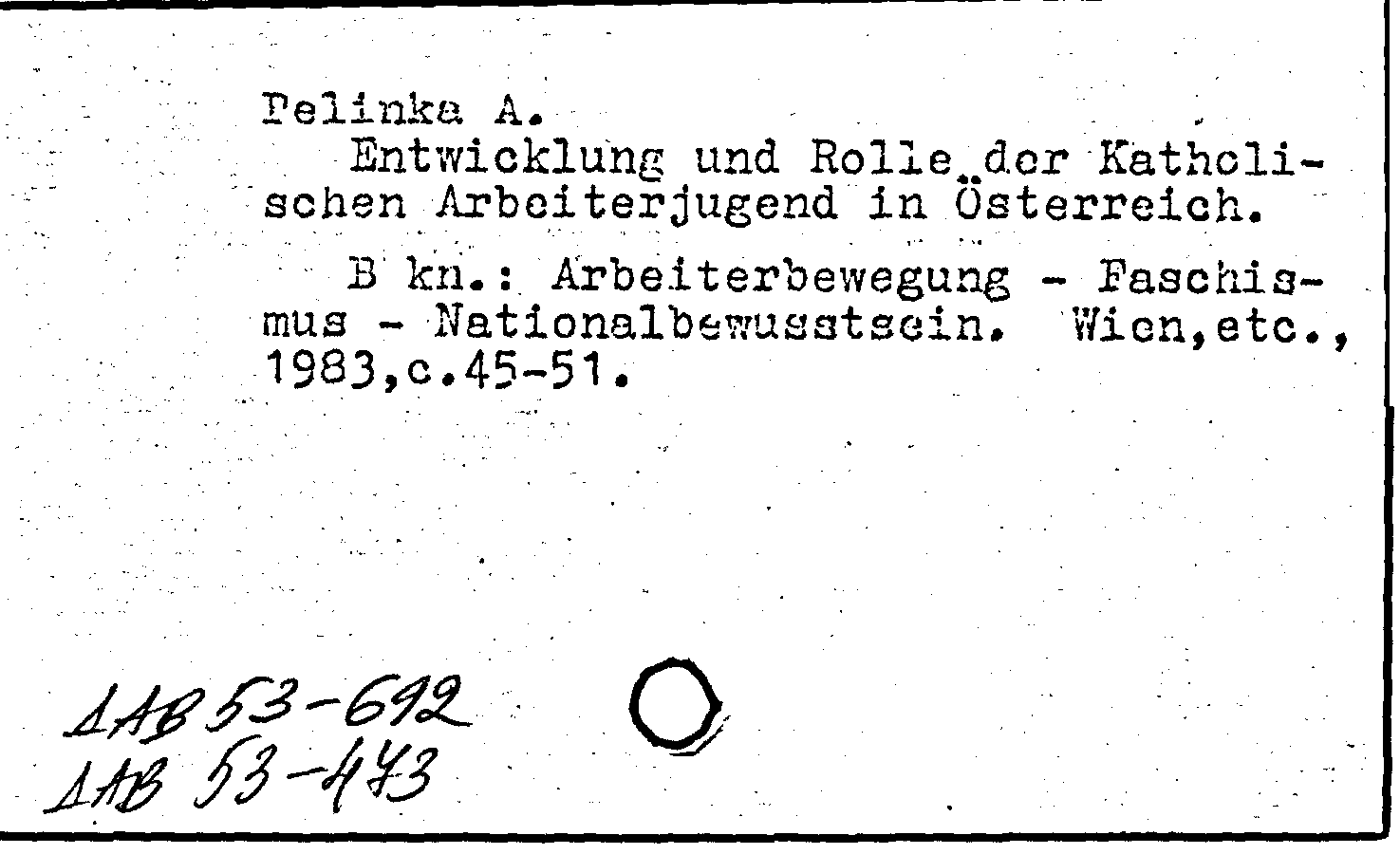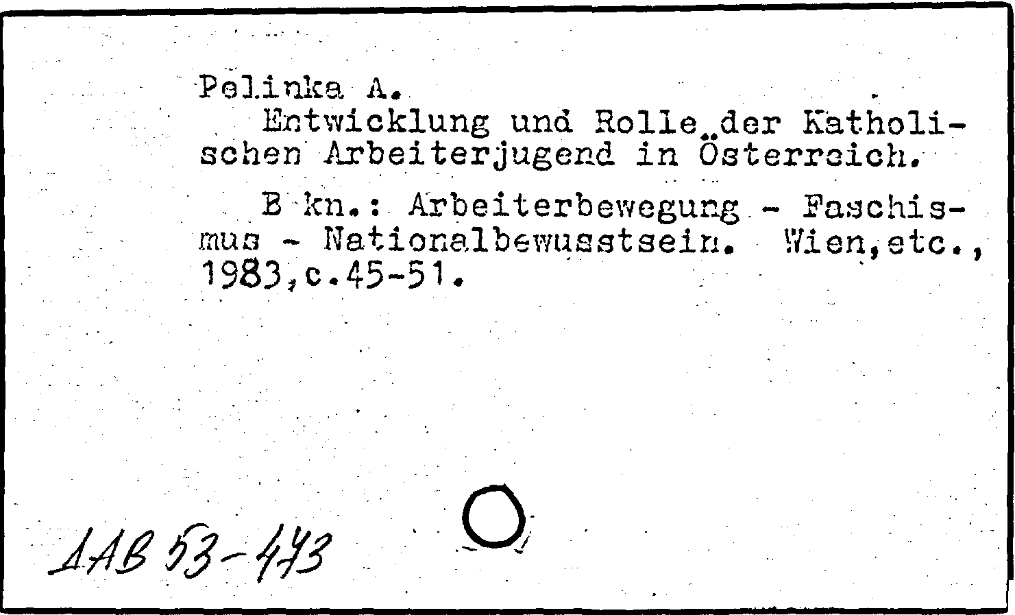 Книга (аналит. описание): Entwicklung und Rolle der Katholischen Arbeiterjugend in Osterreich
