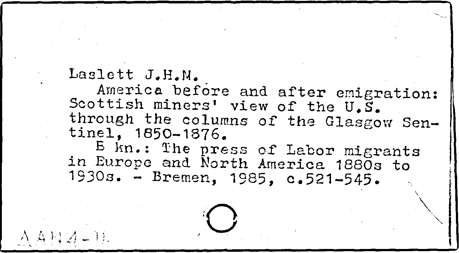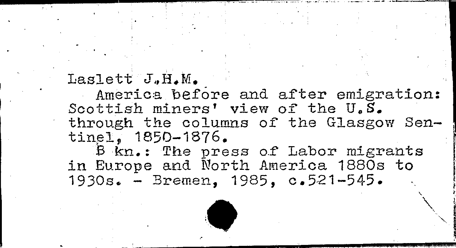 America before and after emigration: Scottish miners' view of the U. S. through the columns of the Glasgow Sentinel, 1850-1876