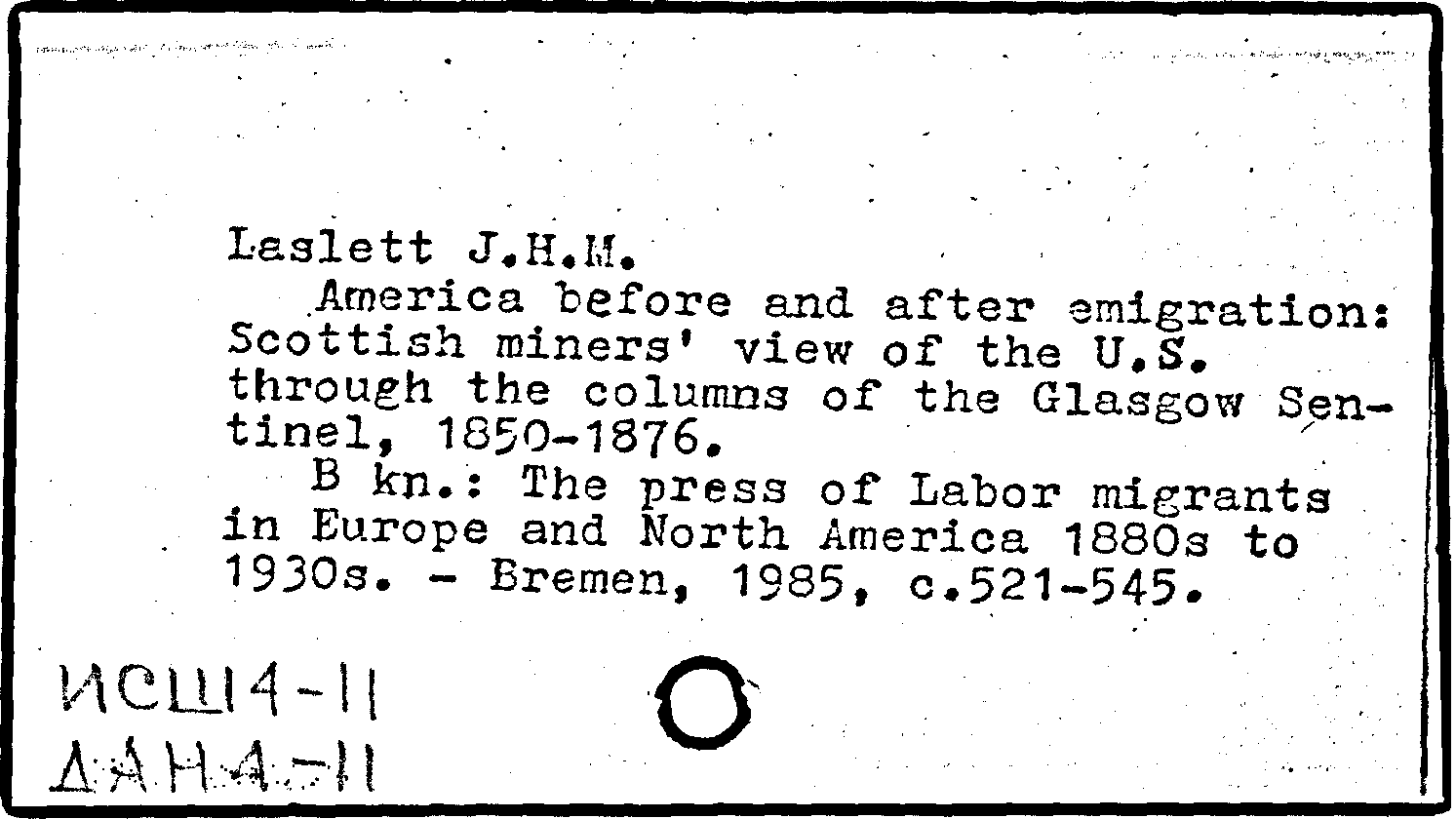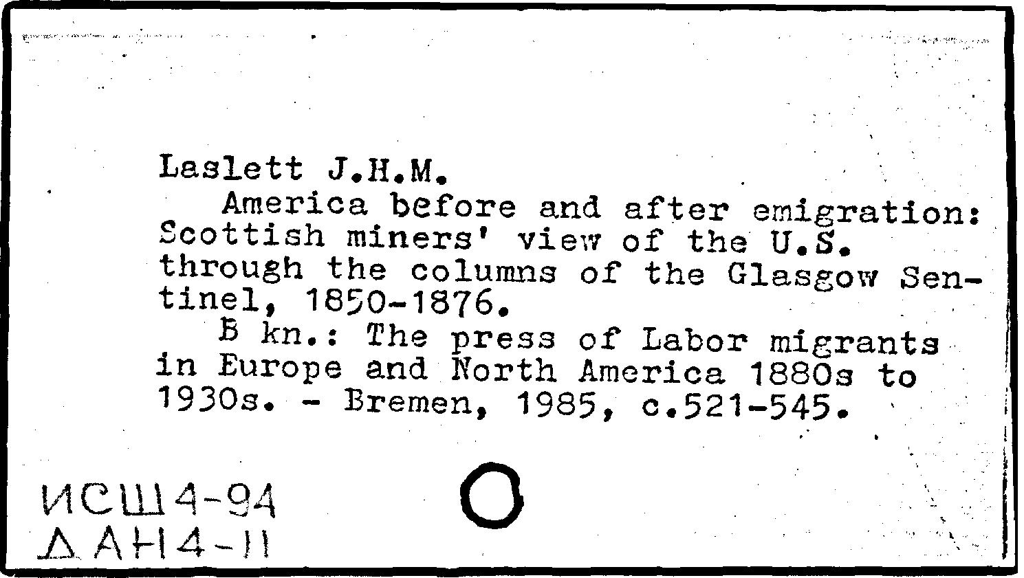 Книга (аналит. описание): America before and after emigration: Scottish miners' view of the U. S. through the columns of the Glasgow Sentinel, 1850-1876