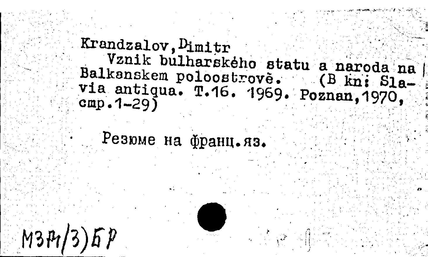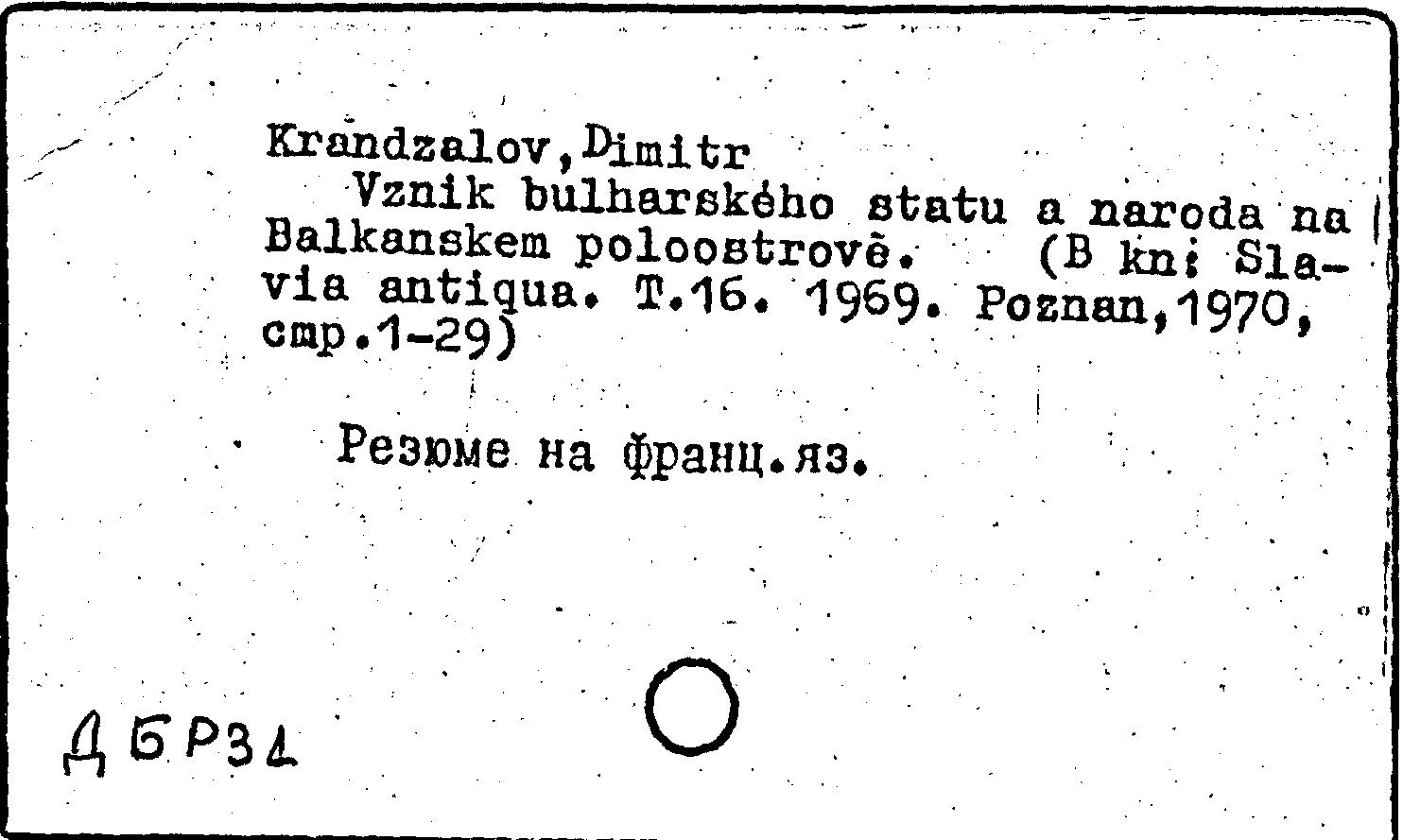 Книга (аналит. описание): Vznik bulharskeho statu a naroda na Balkanskem poloostrove