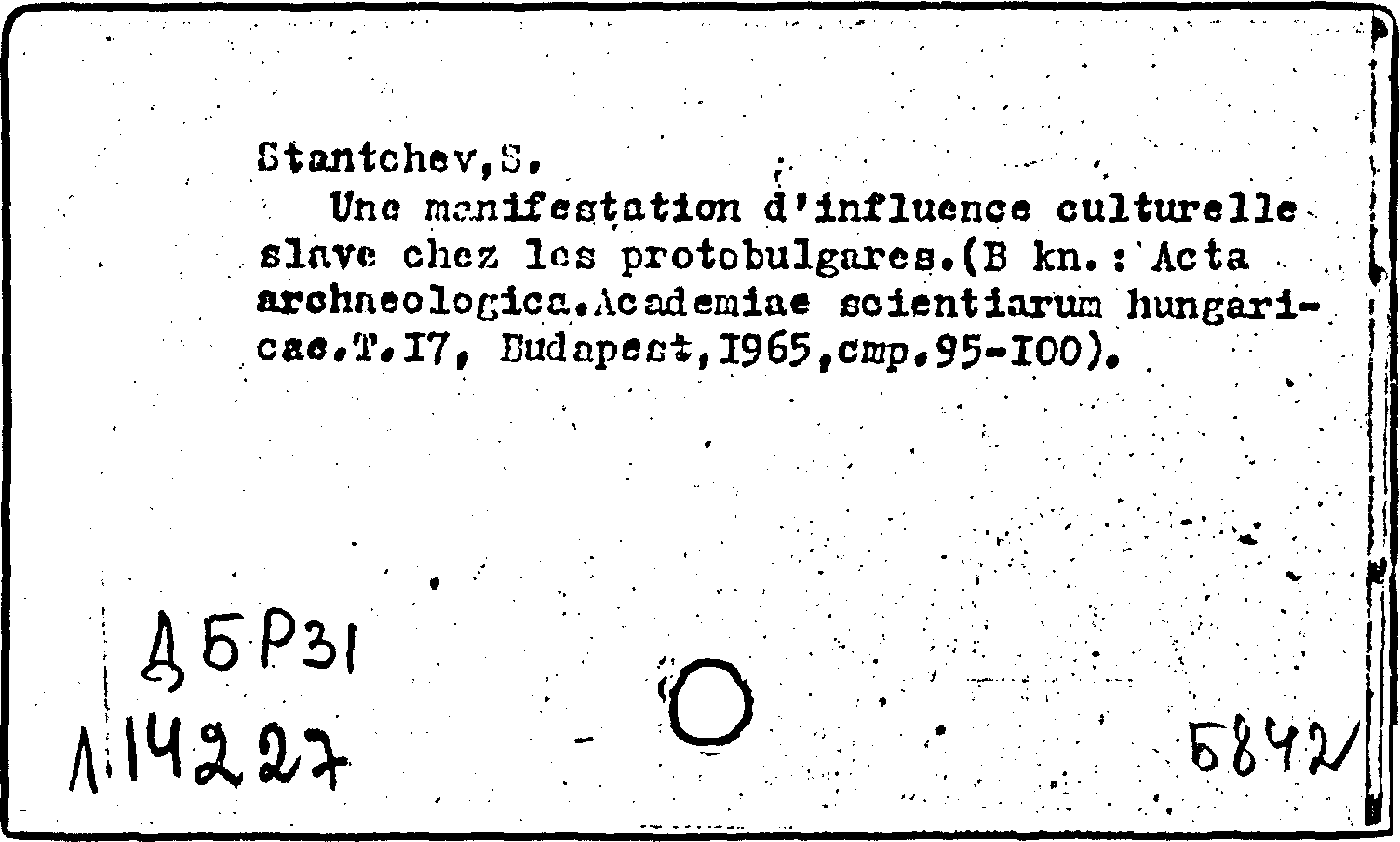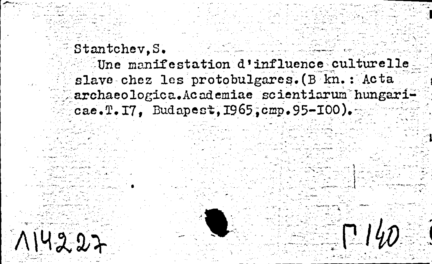 Книга (аналит. описание): Une manifestation d'influence culturelle slave chez les protobulgares