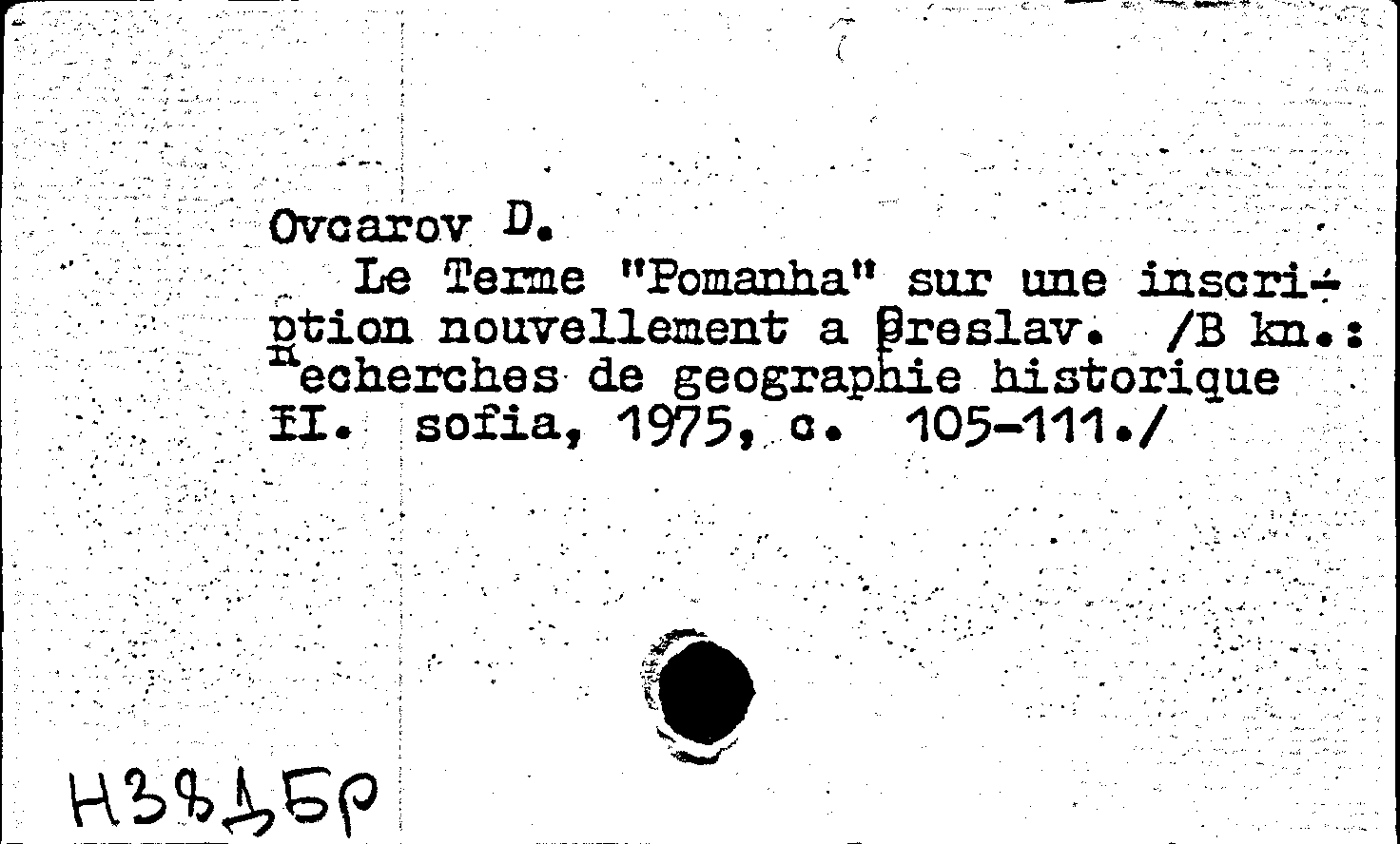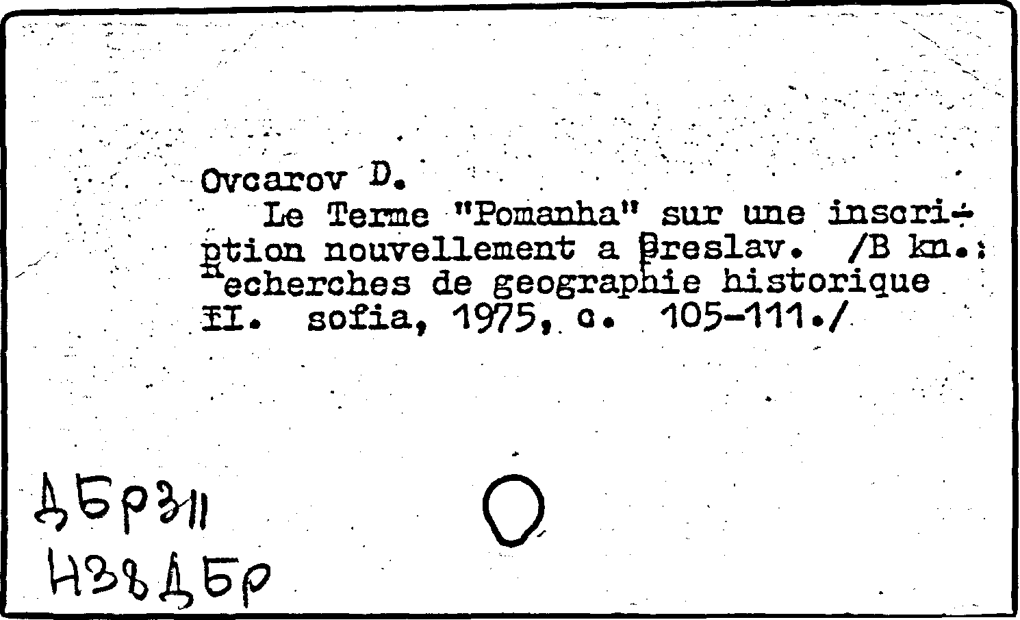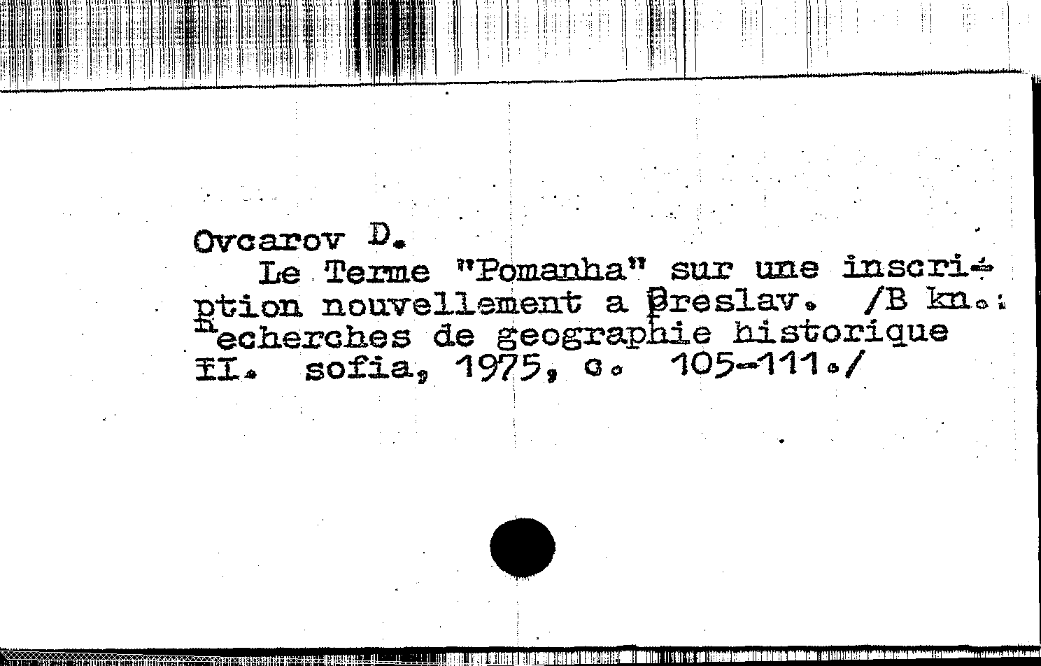 Книга (аналит. описание): Le Terme "Pomanha" sur une inscription nouvellement a Preslav
