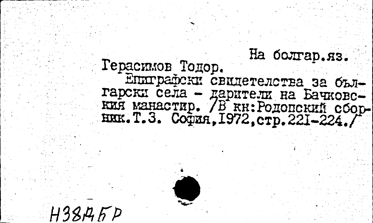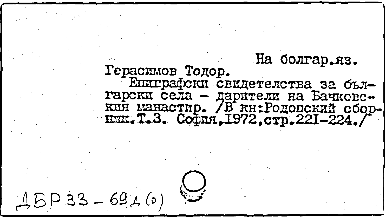 Книга (аналит. описание): Епиграфски свидетелства за български села - дарители на Бачковския манастир