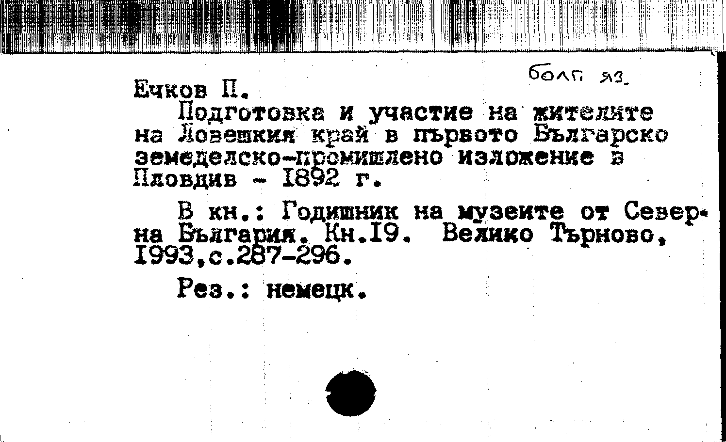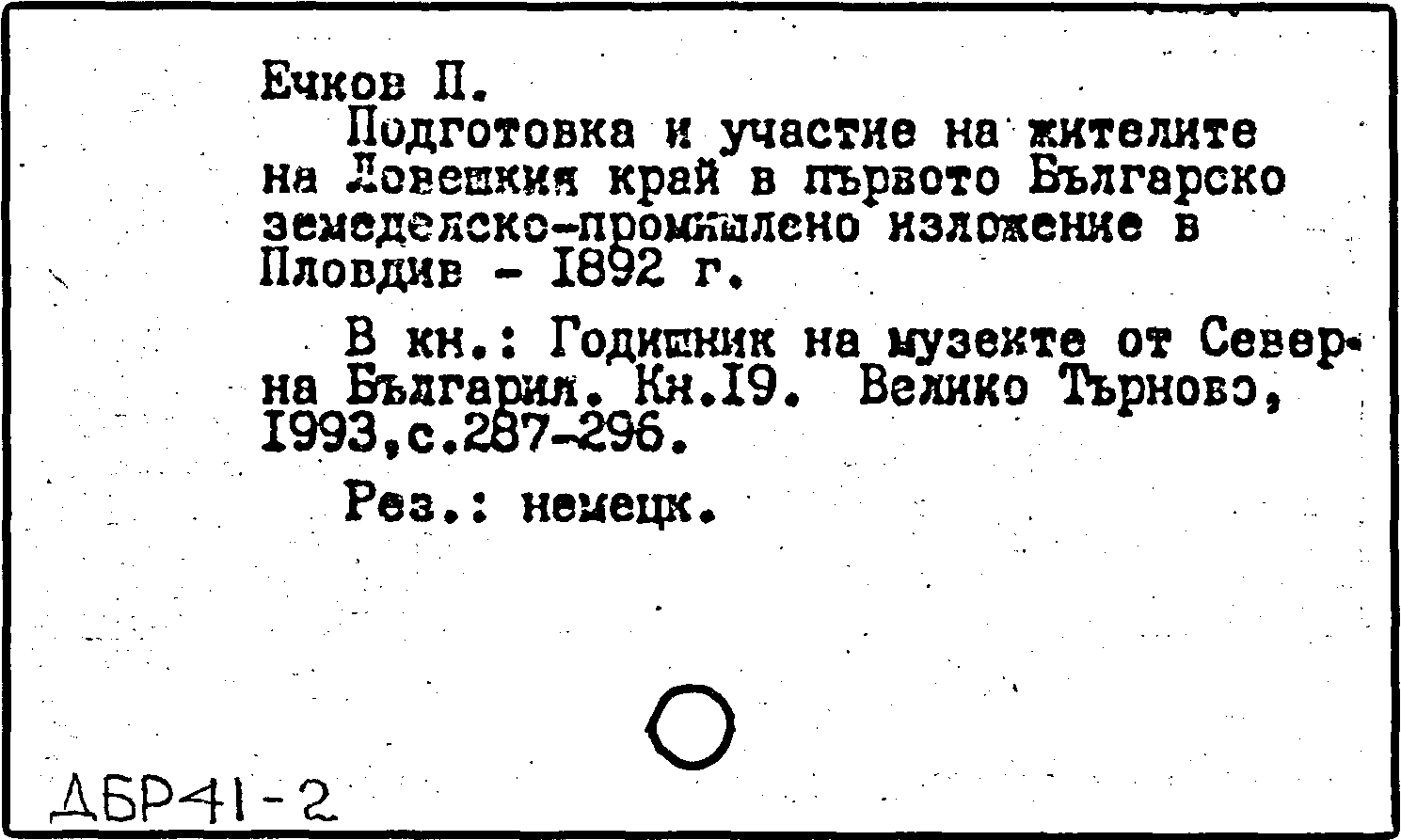 Книга (аналит. описание): Подготовка и участие на жителите на Ловешкия край в първото Българско земеделско-промишлено изложение в Пловдив - 1892 г.