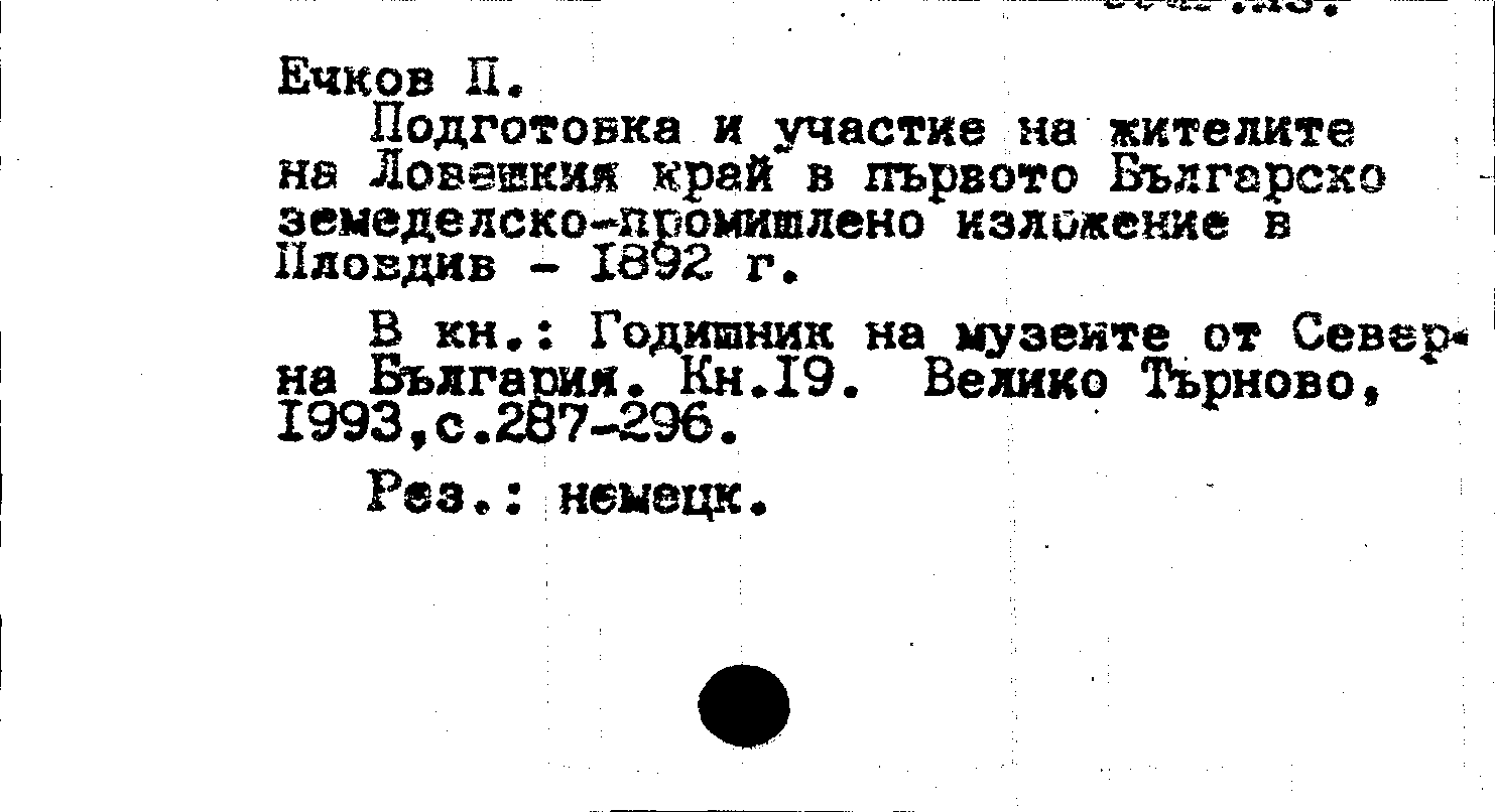 Подготовка и участие на жителите на Ловешкия край в първото Българско земеделско-промишлено изложение в Пловдив - 1892 г.