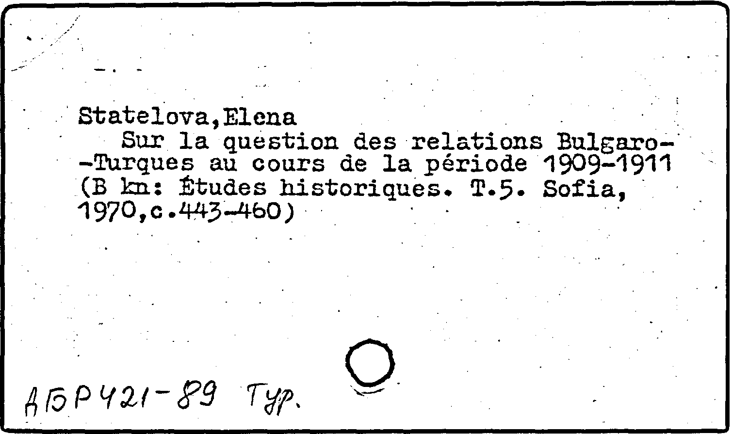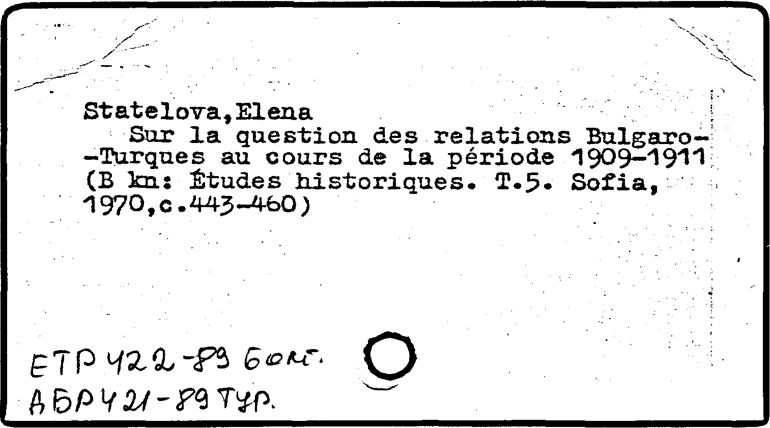 Книга (аналит. описание): Sur la question des relations Bulgaro-Turques au cours de la periode 1909-1911