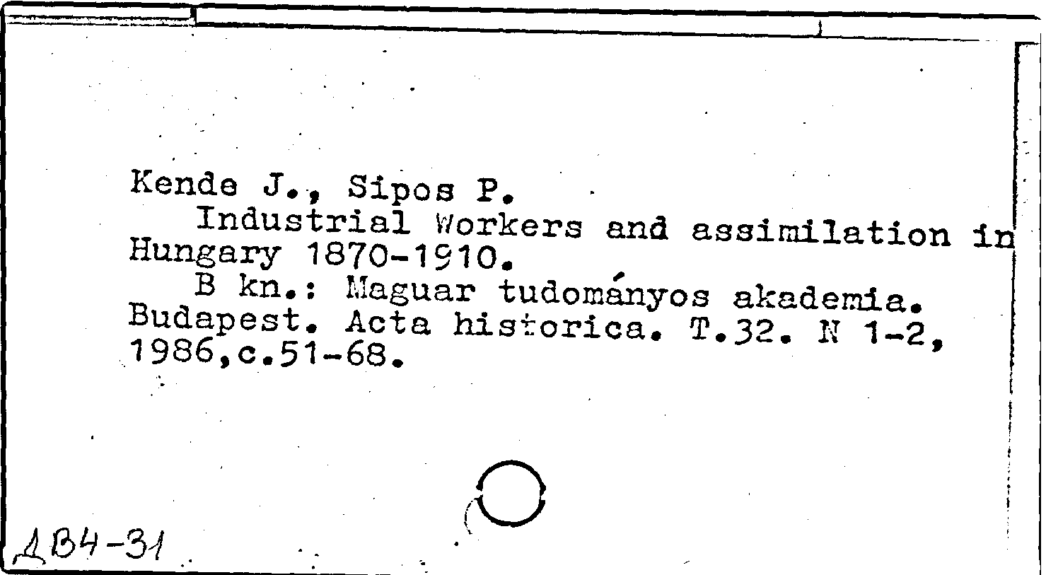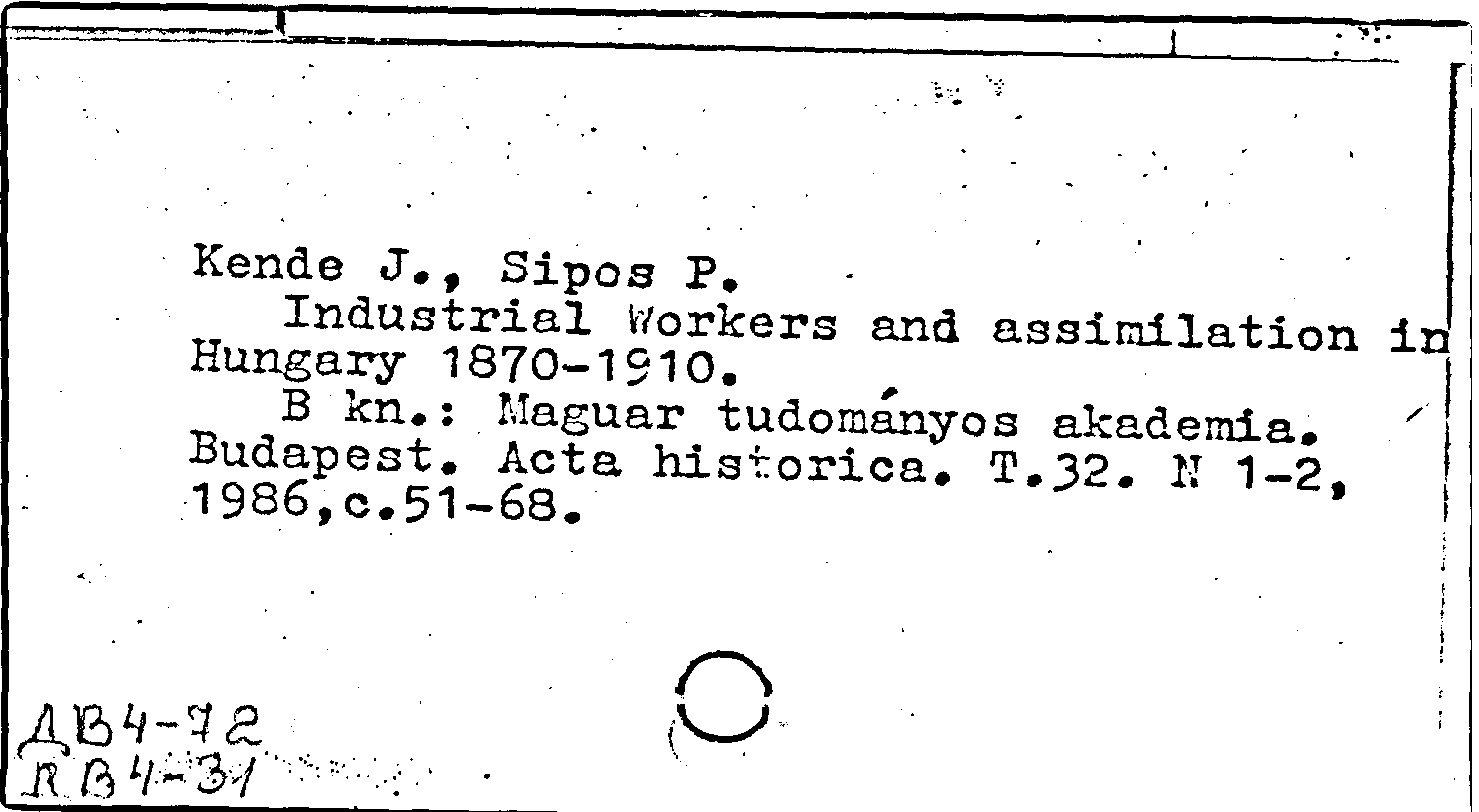 Книга (аналит. описание): Industrial Workers and assimilation in Hungary 1870-1910