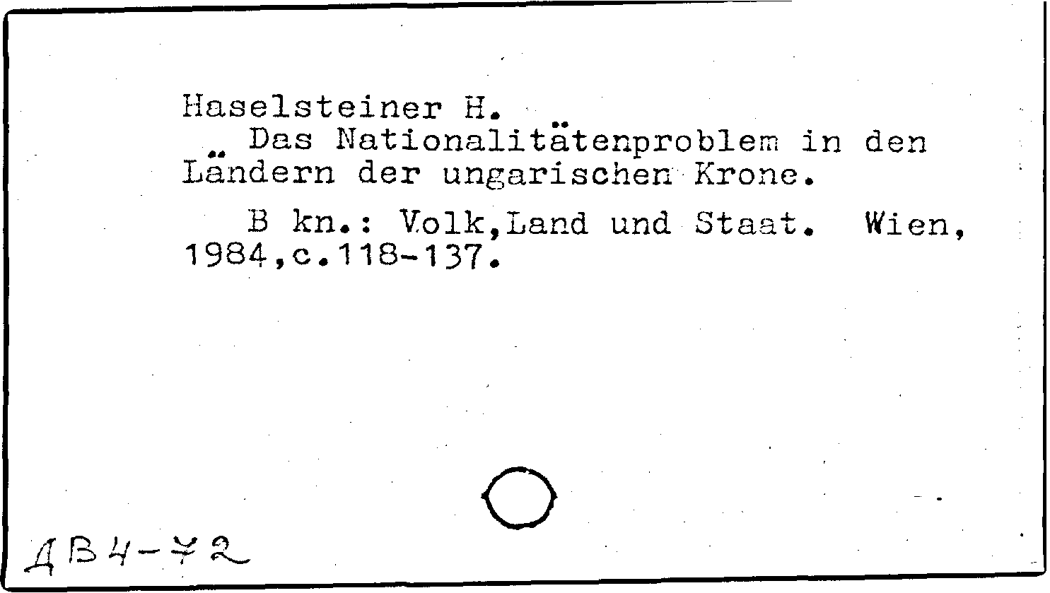 Книга (аналит. описание): Das Nationalitatenproblem in den Landern der ungarischen Krone