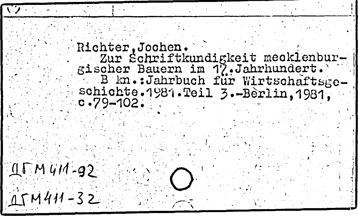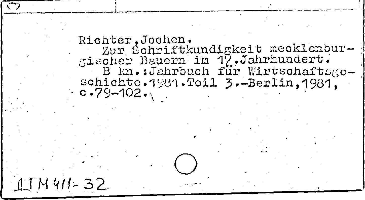 Книга (аналит. описание): Zur Schriftkundigkeit mechlenburgischer Bauern im 17. Jahrhundert