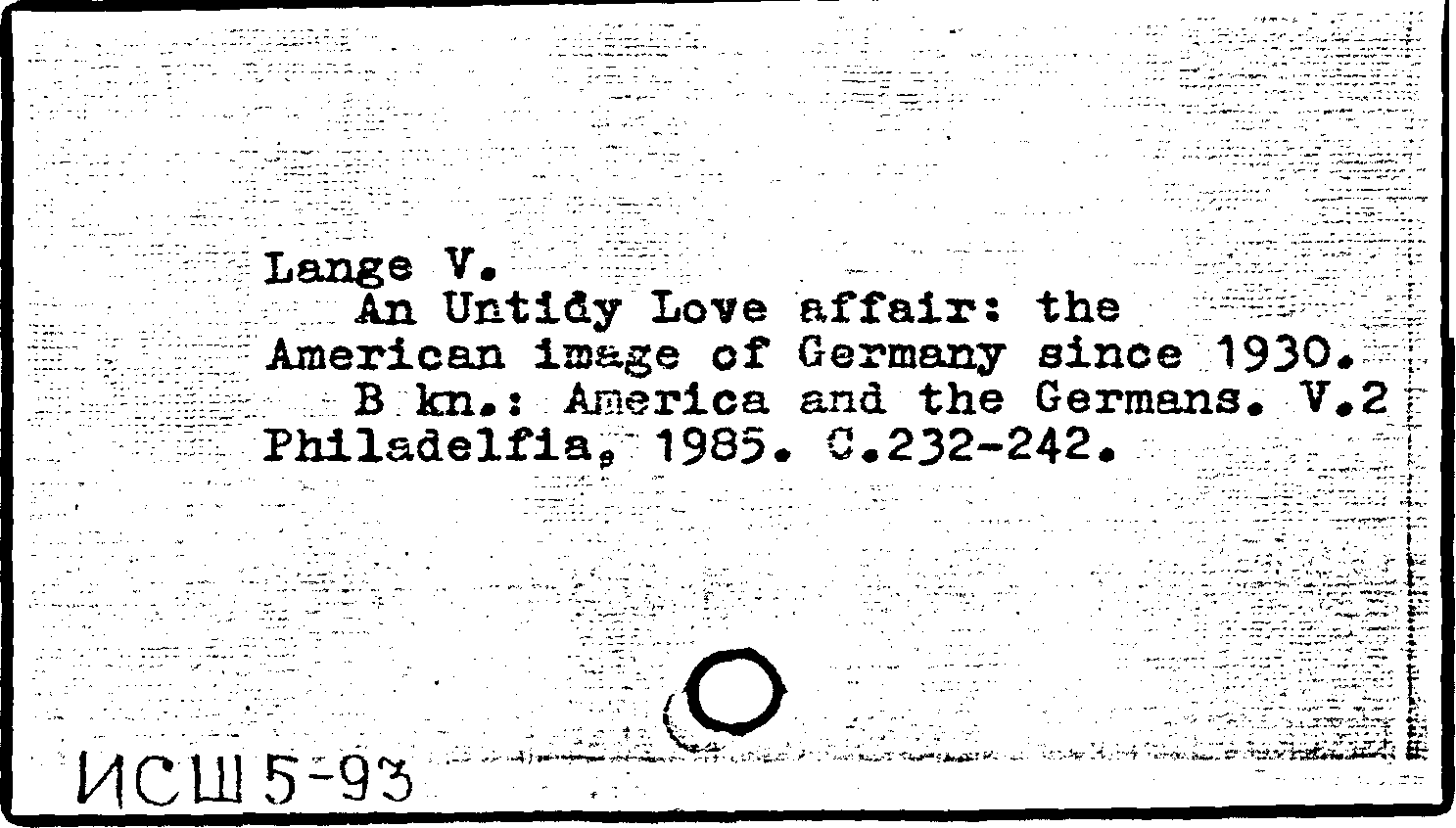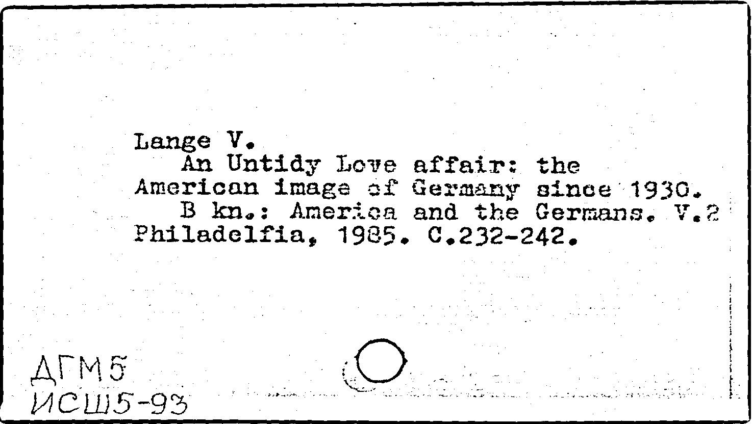 Книга (аналит. описание): An Untidy Love affair: the American image of Germany since 1930