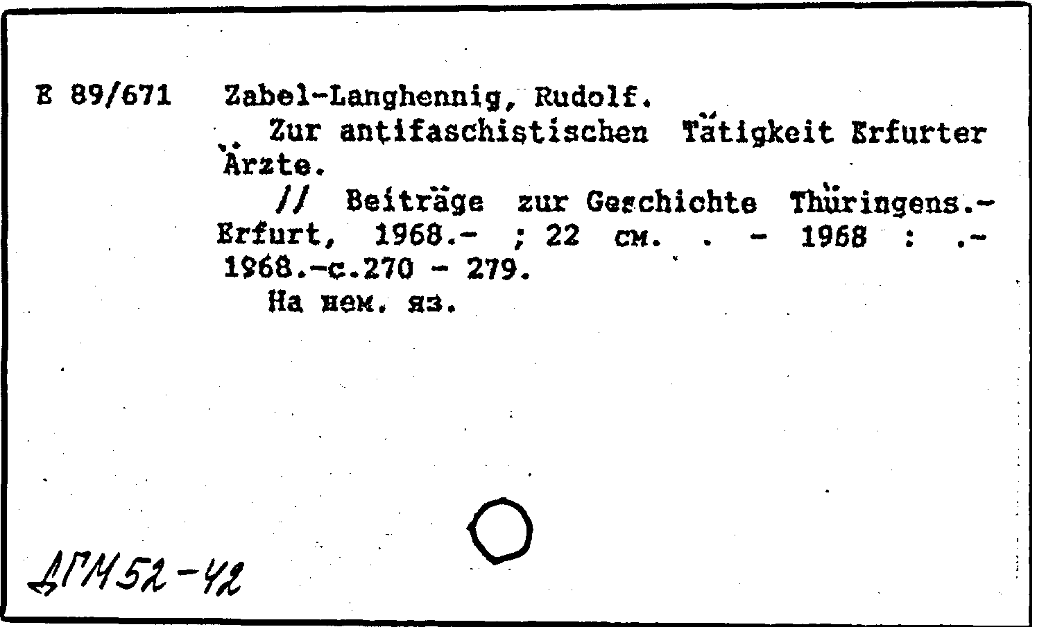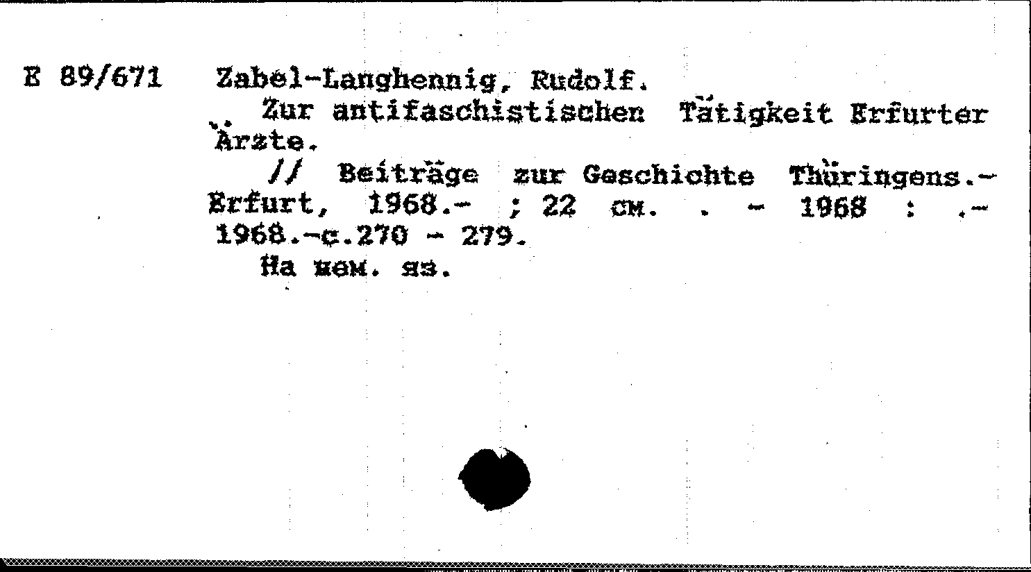 Книга (аналит. описание): Zur antifaschistischen Tatigkeit Erfurter Arzte