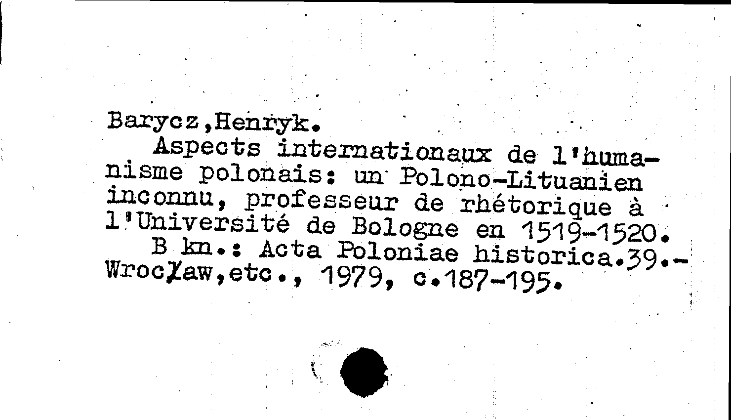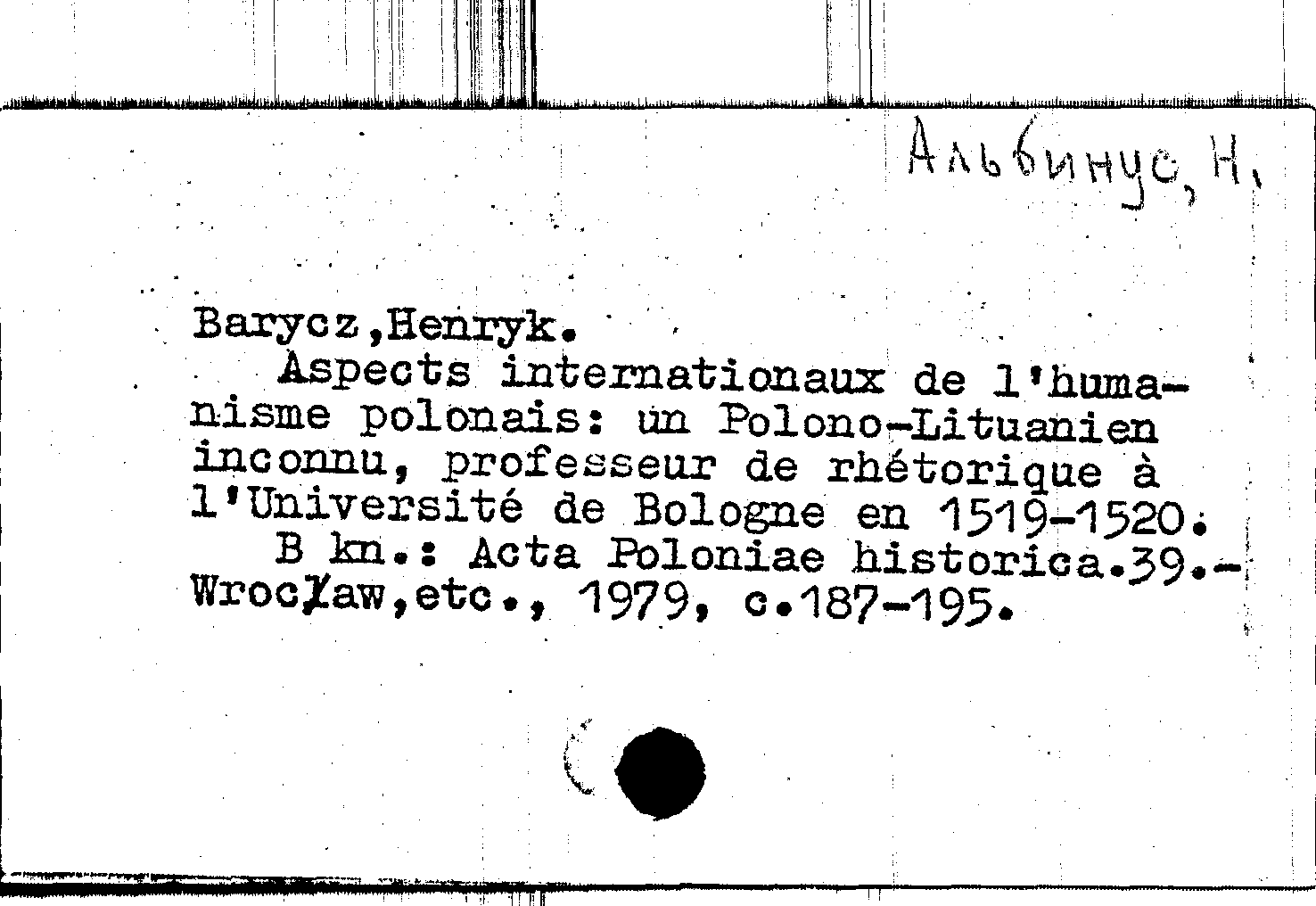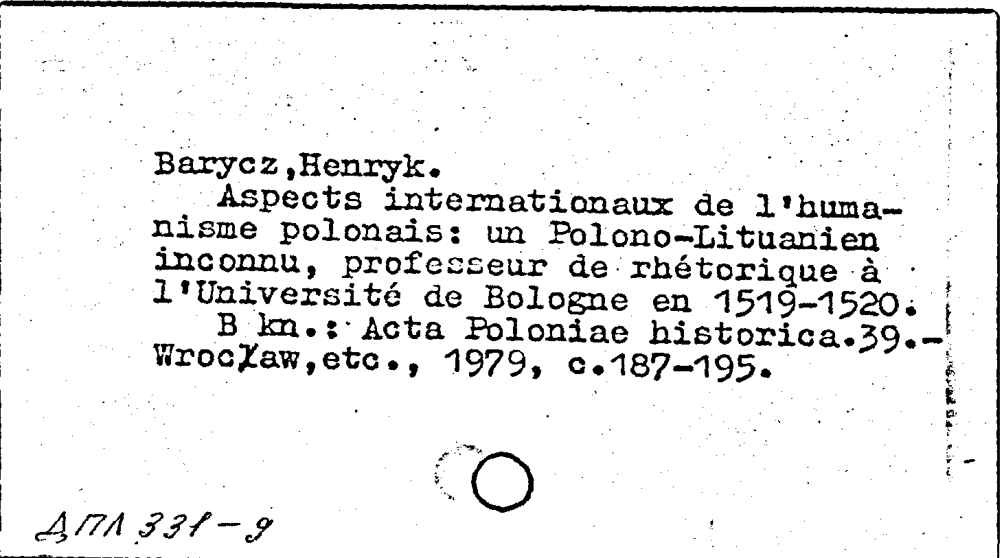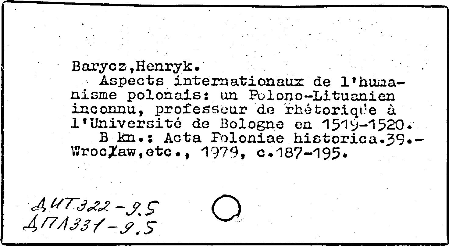 Книга (аналит. описание): Aspects internationaux de l'humanisme polonais: un Polono-Lituanien inconnu, professeur de rhetorique a l'Universite de Bologne en 1519-1520