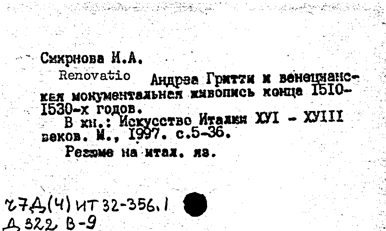 Книга (аналит. описание): Renovatio Андреа Гритти и венецианская монументальная живопись конца 1510-1530-х годов