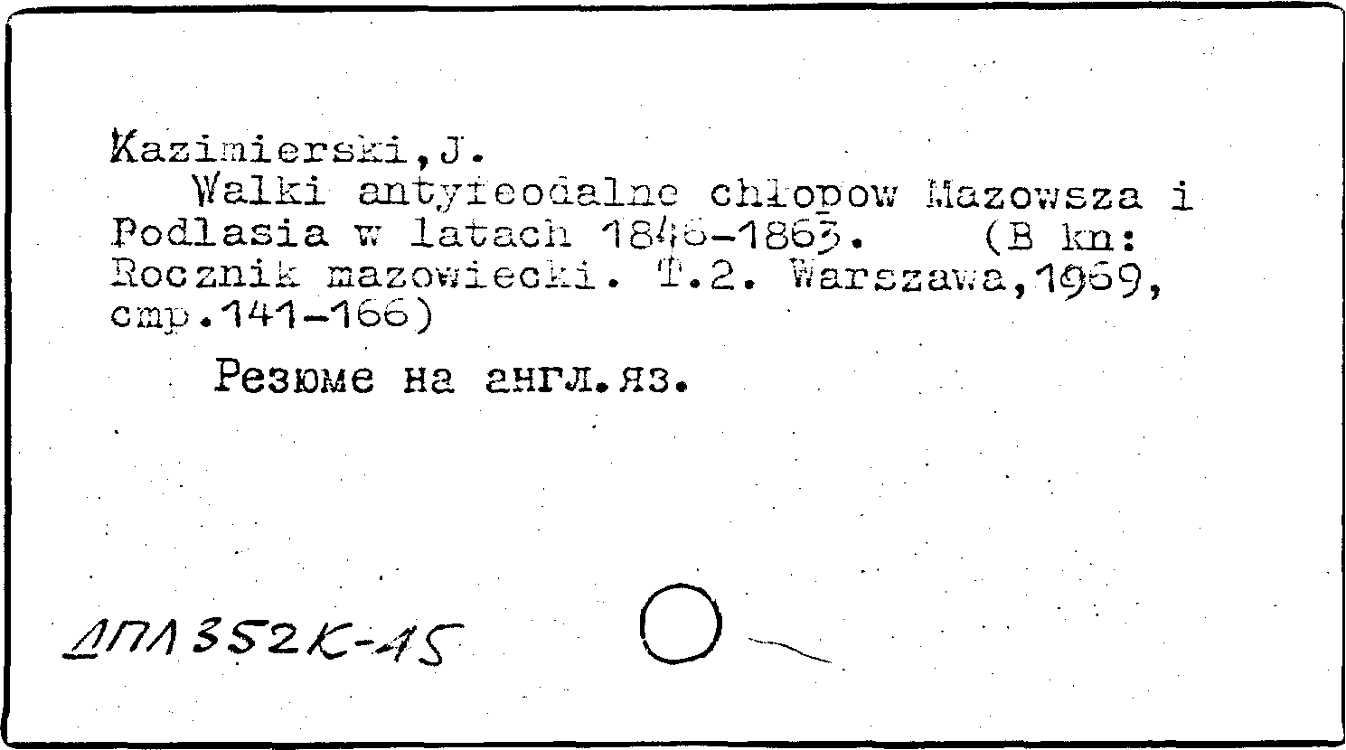 Книга (аналит. описание): Walki antyfeodalne chlopow Mazowsza i Podlasia w latach 1846-1863