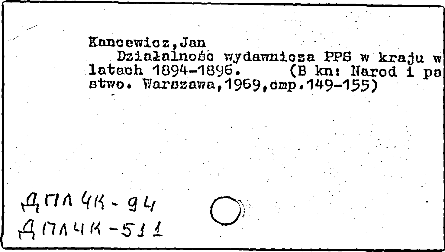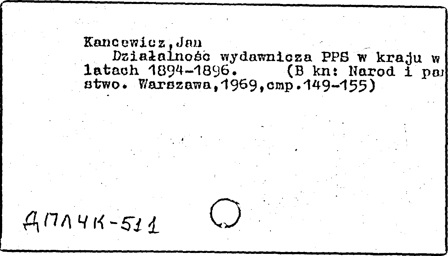 Книга (аналит. описание): Dzialalnosc wydawnicza PPS w kraju w latach 1894-1896