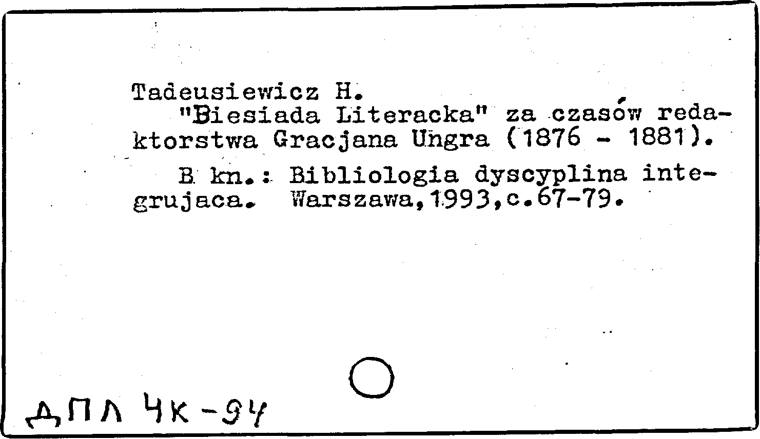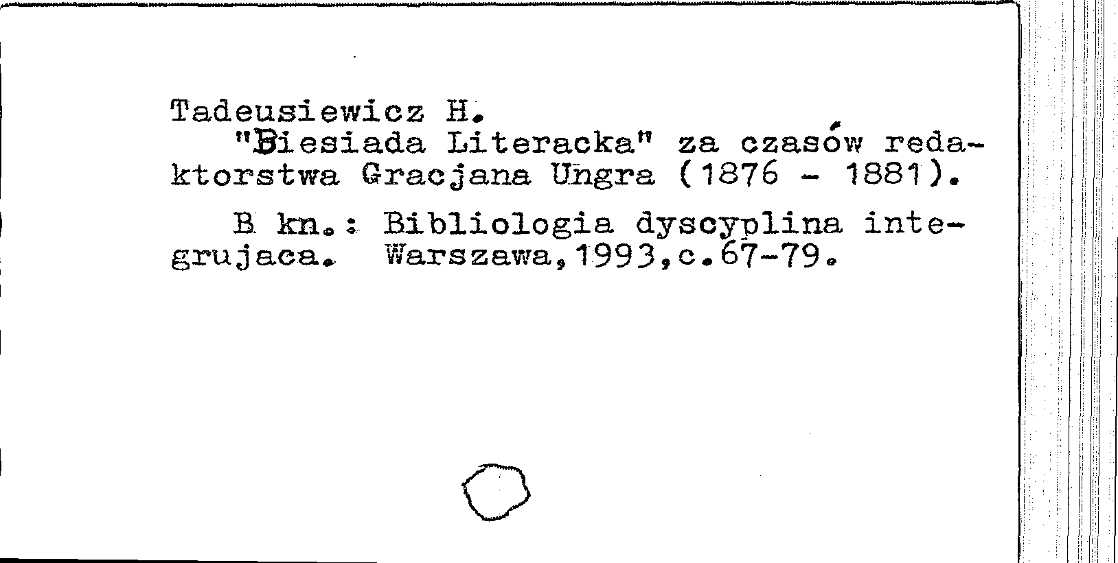 Книга (аналит. описание): "Biesiada Literacka" za czasow redaktorstwa Gracjana Ungra (1876-1881)