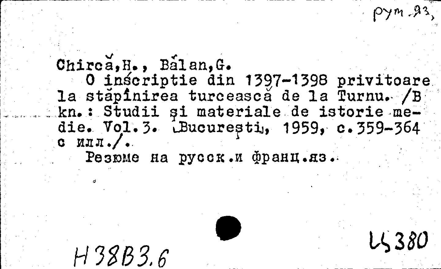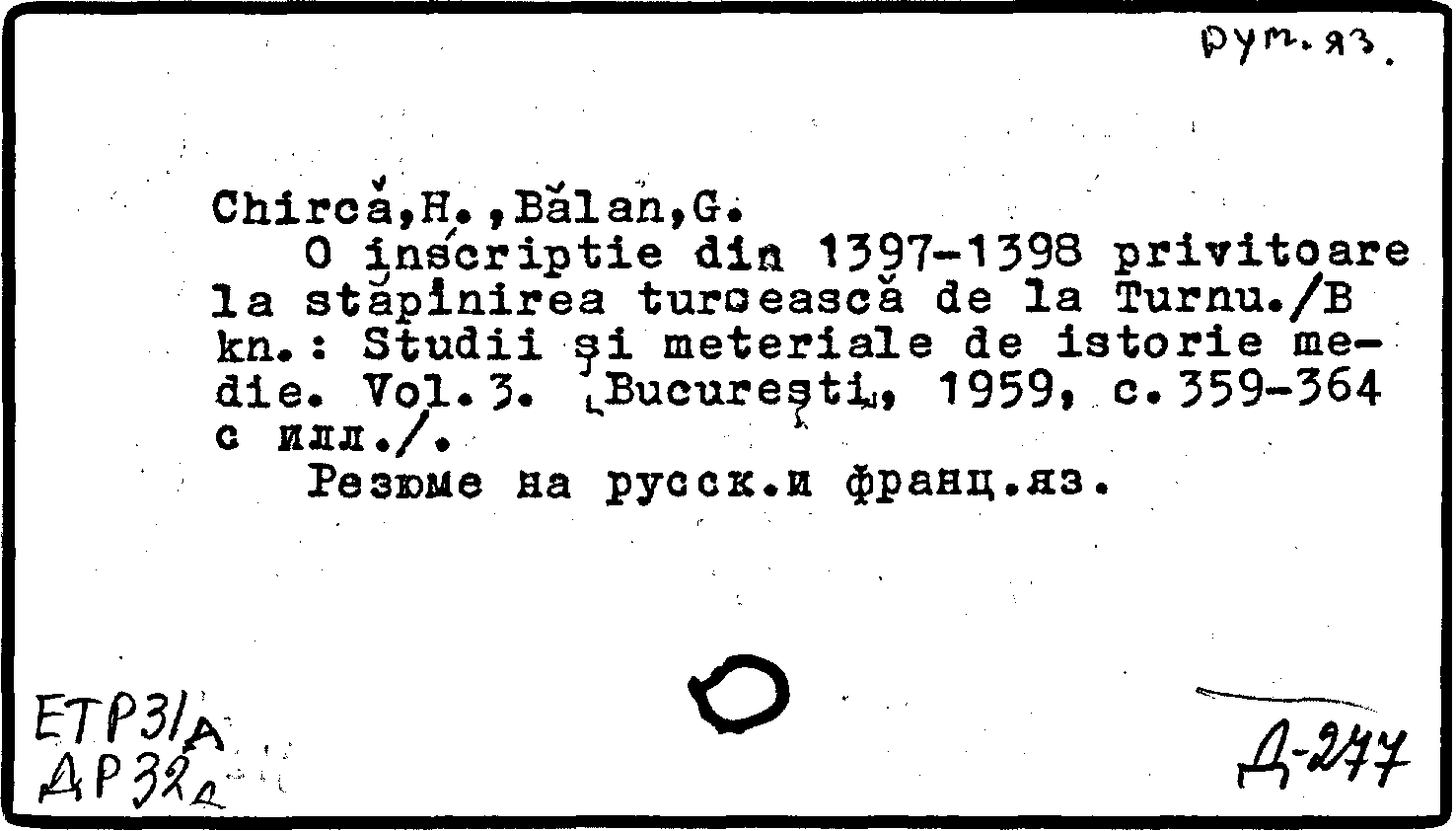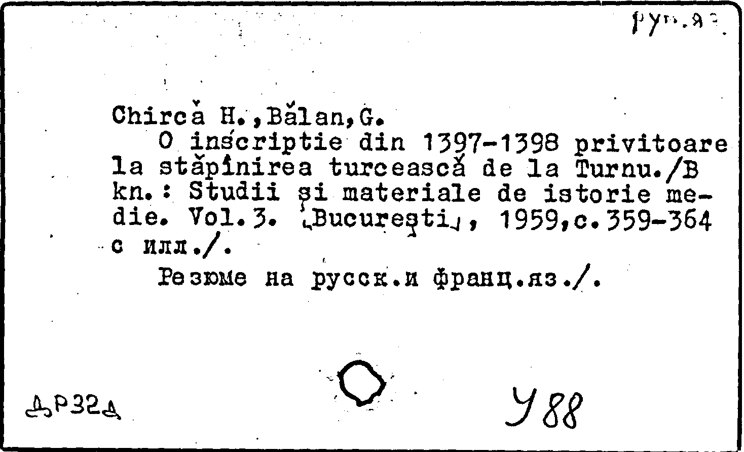 Книга (аналит. описание): O inscriptie din 1397-1398 privitoare la stapinirea turceasca de la Turnu