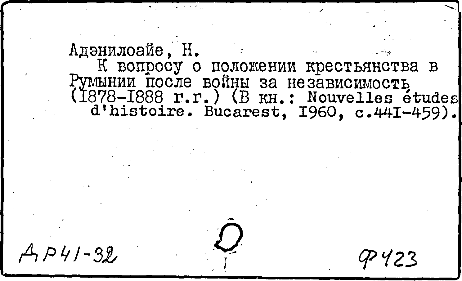 Книга (аналит. описание): К вопросу о положении крестьянства в Румынии после войны за независимость (1878-1888 гг.)