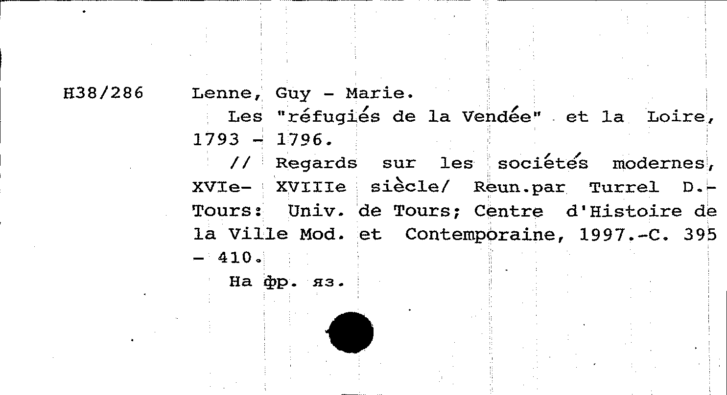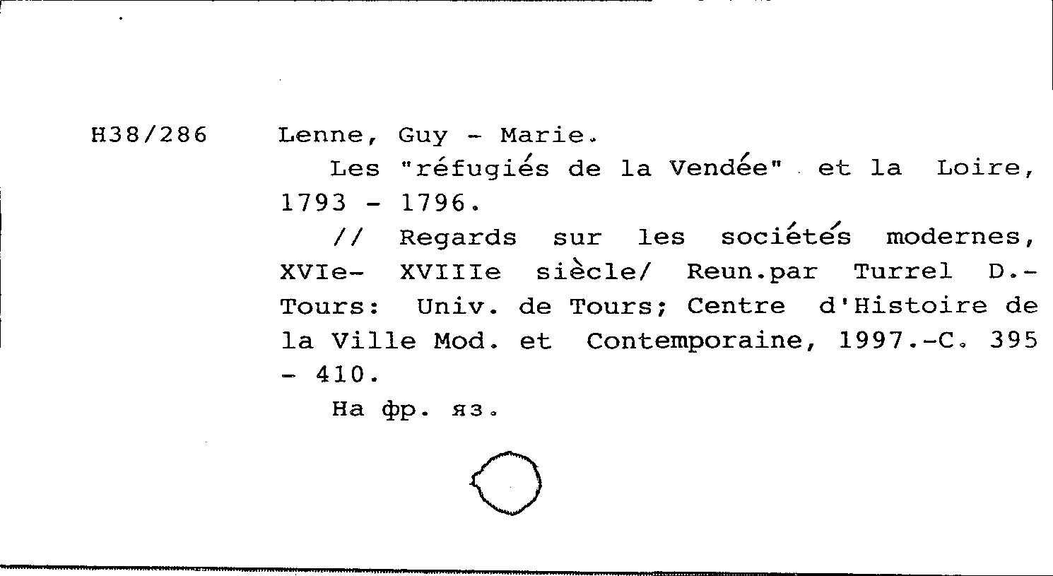 Книга (аналит. описание): Les "refugies de la Vendee" et la Loire, 1793-1796
