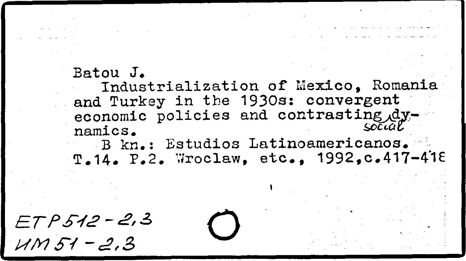 Книга (аналит. описание): Industrialization of Mexico, Romania and Turkey in the 1930s: convergent economic policies and contrasting social dynamics