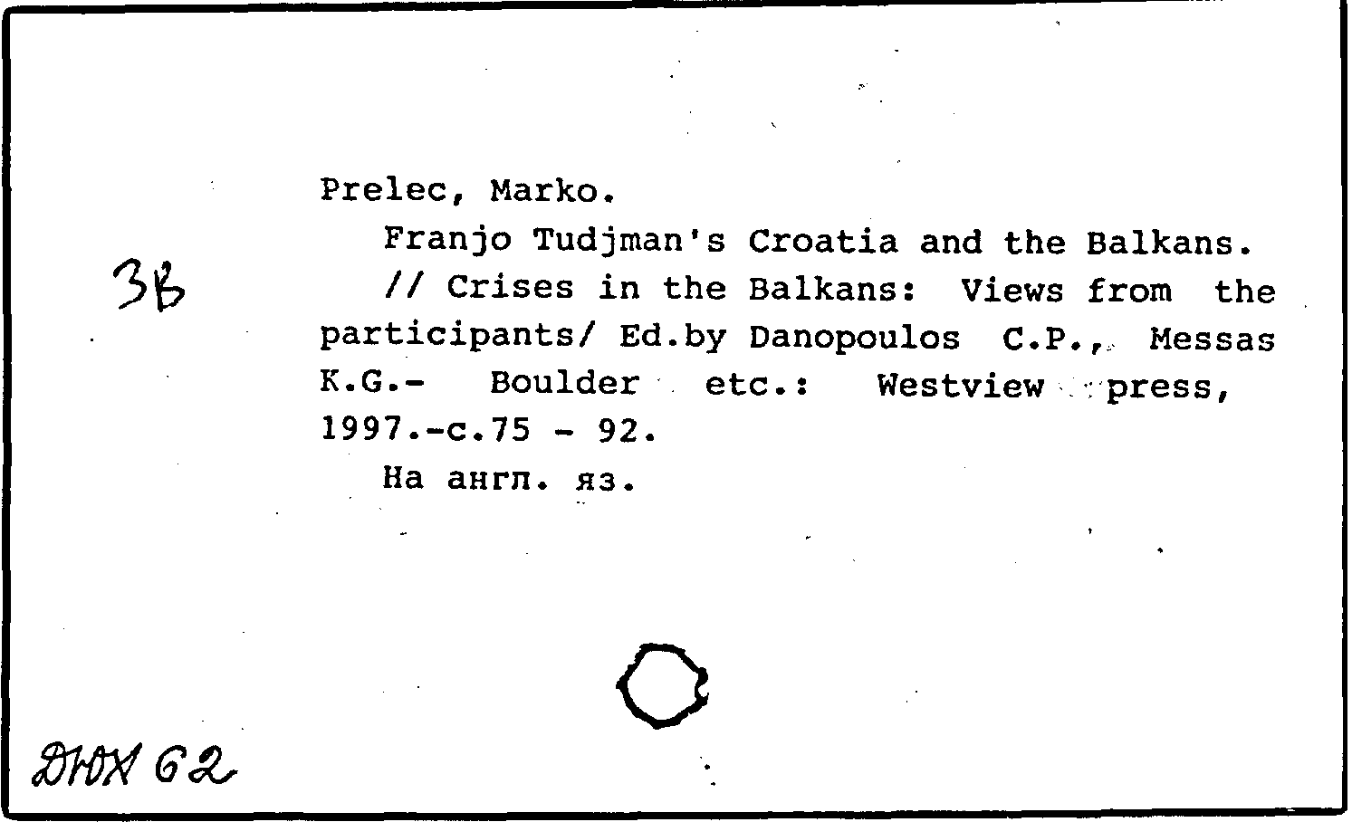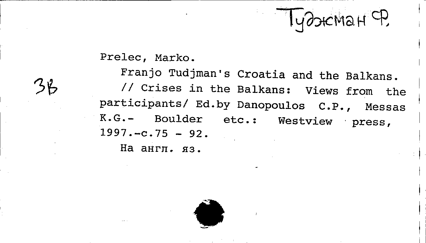 Книга (аналит. описание): Franjo Tudjman's Croatia and the Balkans