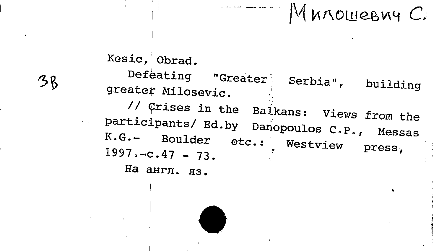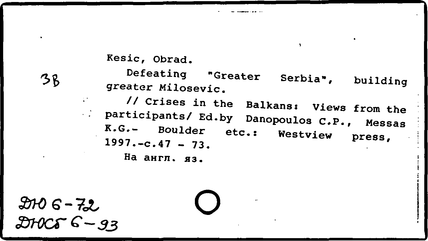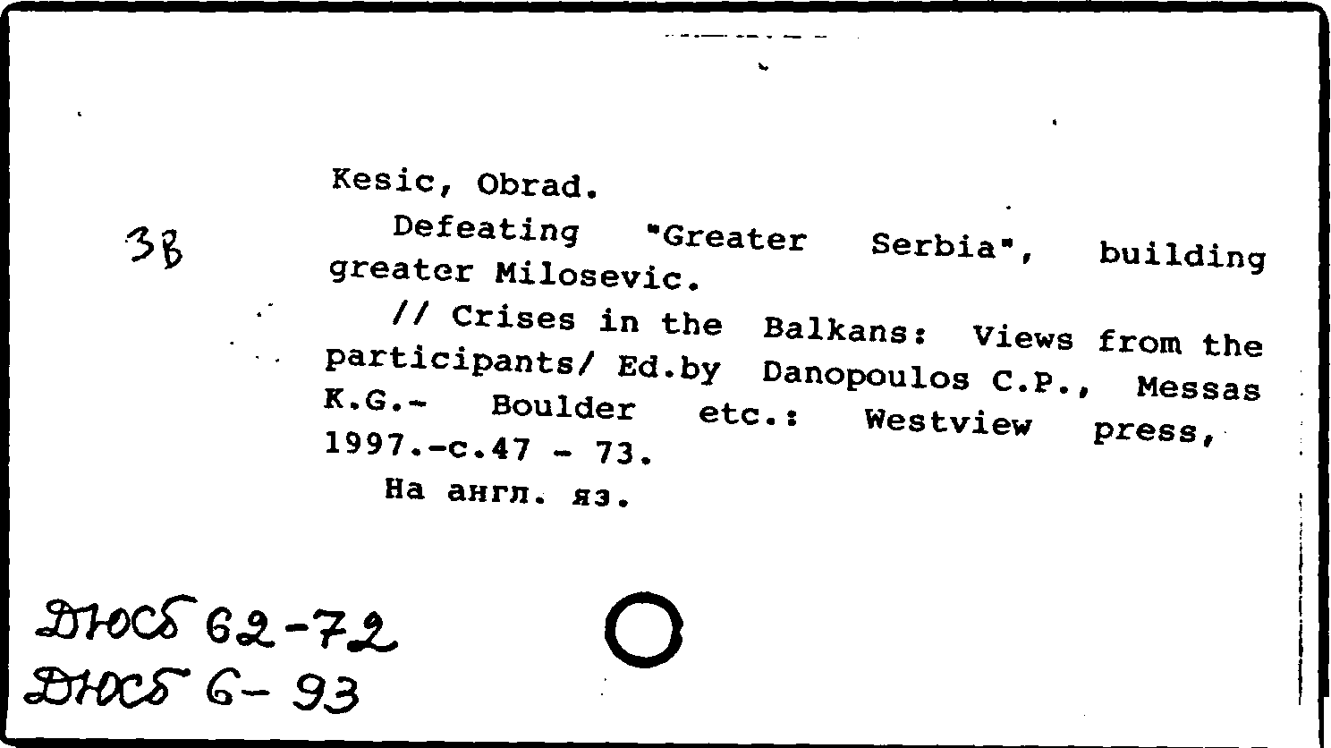 Книга (аналит. описание): Defeating "Greater Serbia", building greater Milosevic