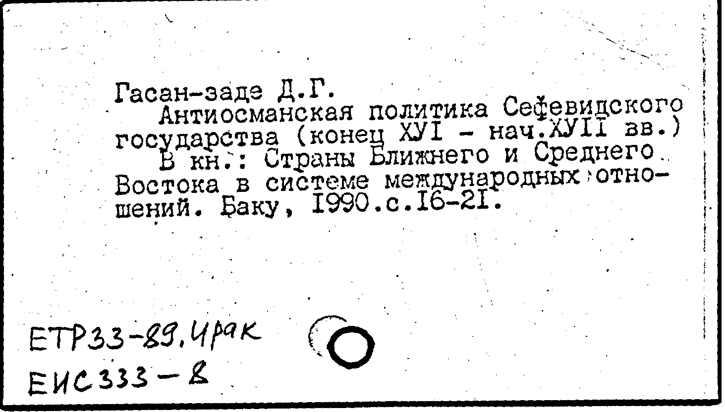 Книга (аналит. описание): Антиосманская политика Сефевидского государства (конец XVI - нач. XVII вв.)