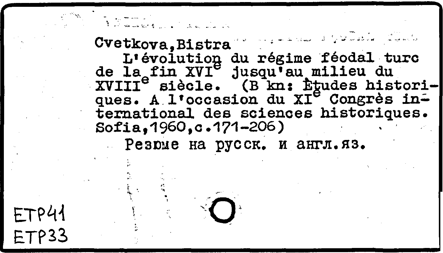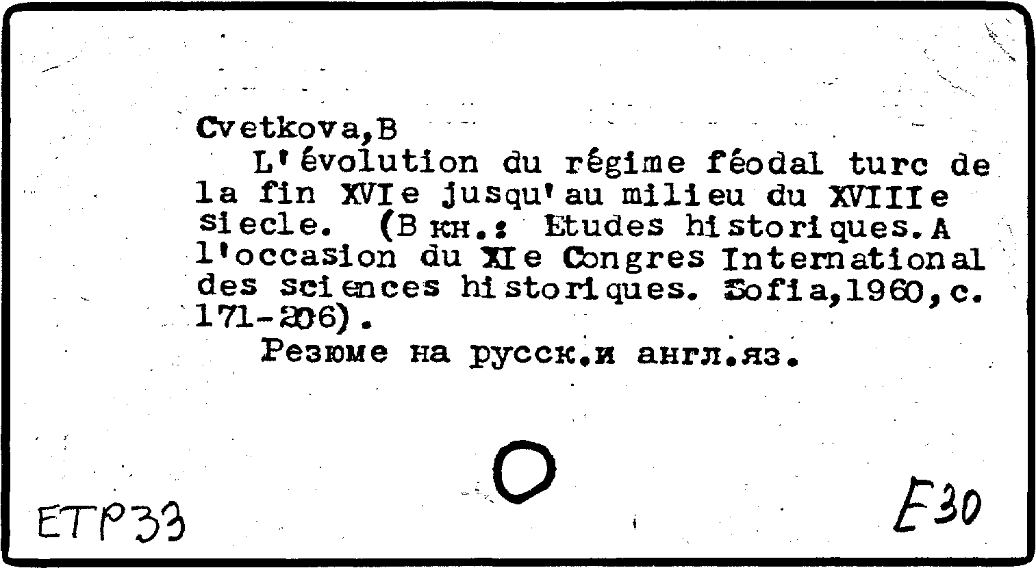 Книга (аналит. описание): L'evolution du regime feodal turc de la fin XVIe jusqu'au milieu du XVIIIe siecle