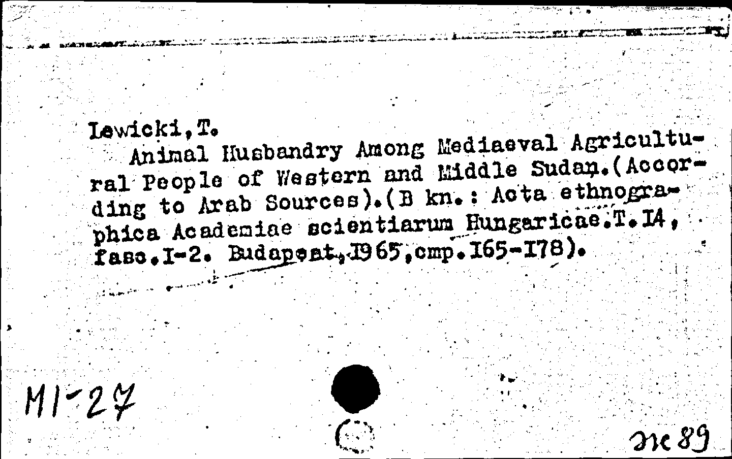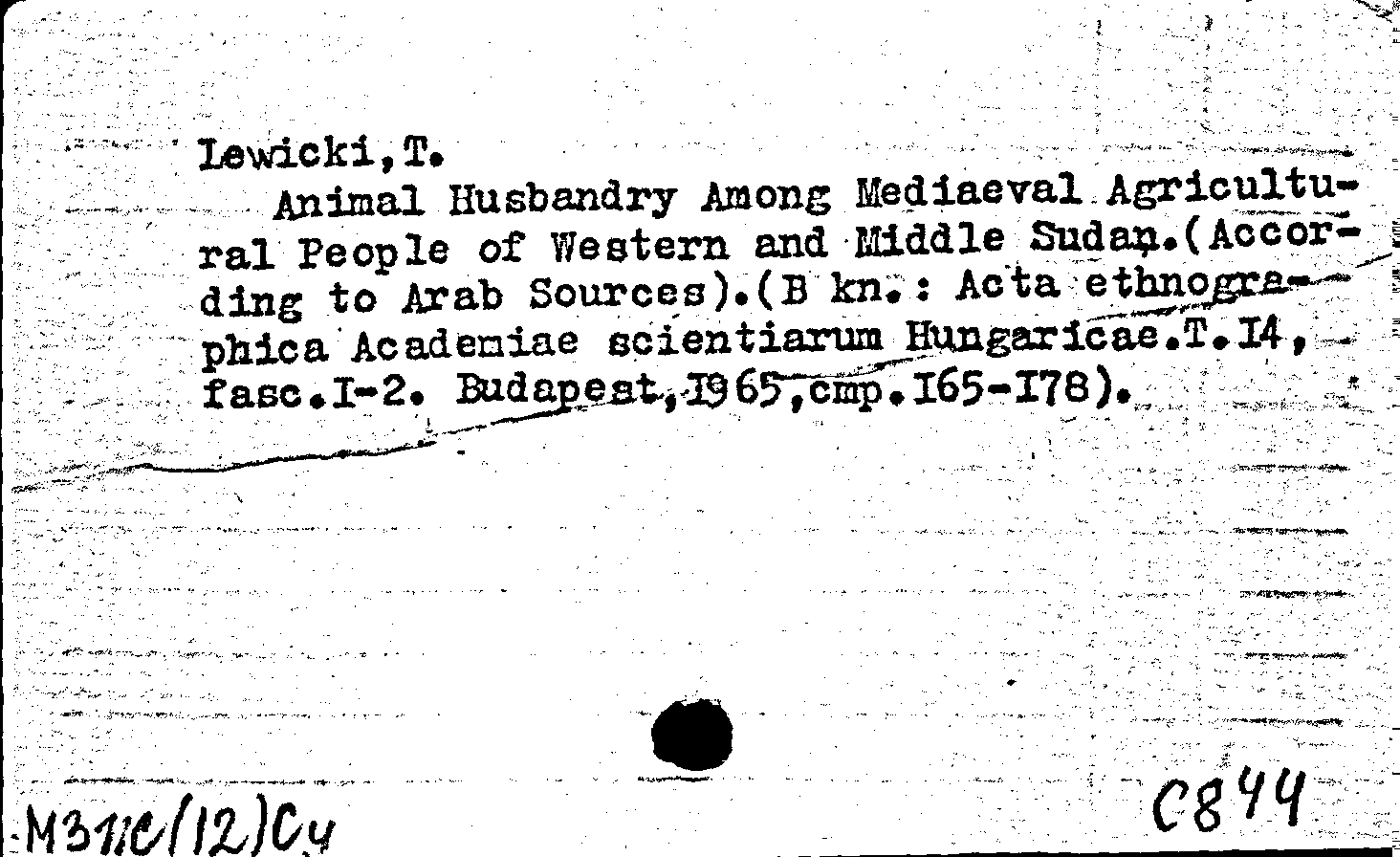 Animal Husbandry Among Mediaeval Agricultural People of Western and Middle Sudan